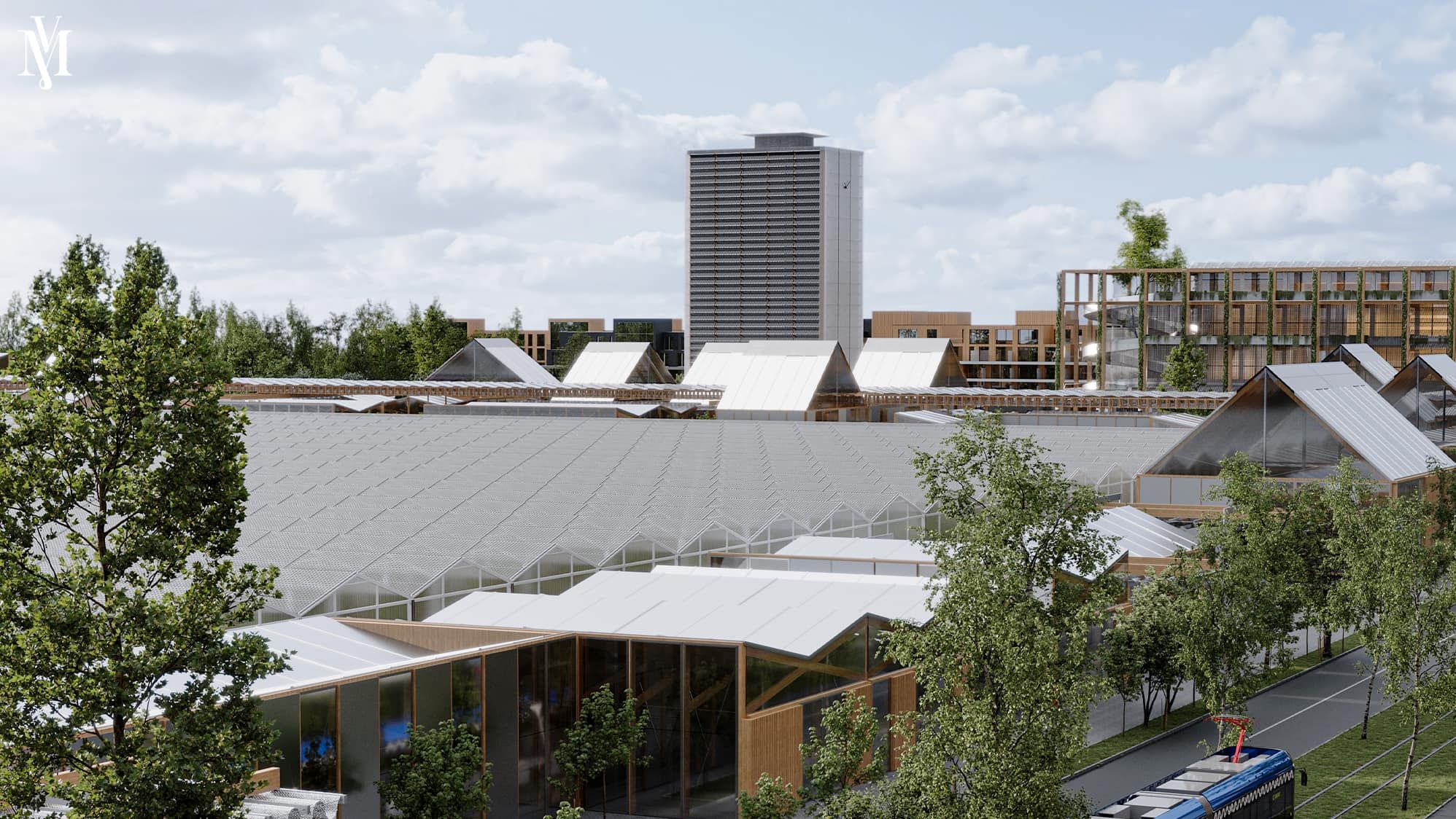 На головній осі передбачені 5 площ, кожна з яких матиме певну особливість. Центральна площа стане серцем містечка – там зведуть торгівельний центр, фермерський ринок і найвищу споруду міста – вертикальну теплицю, яка сягатиме вгору на 50 метрів.