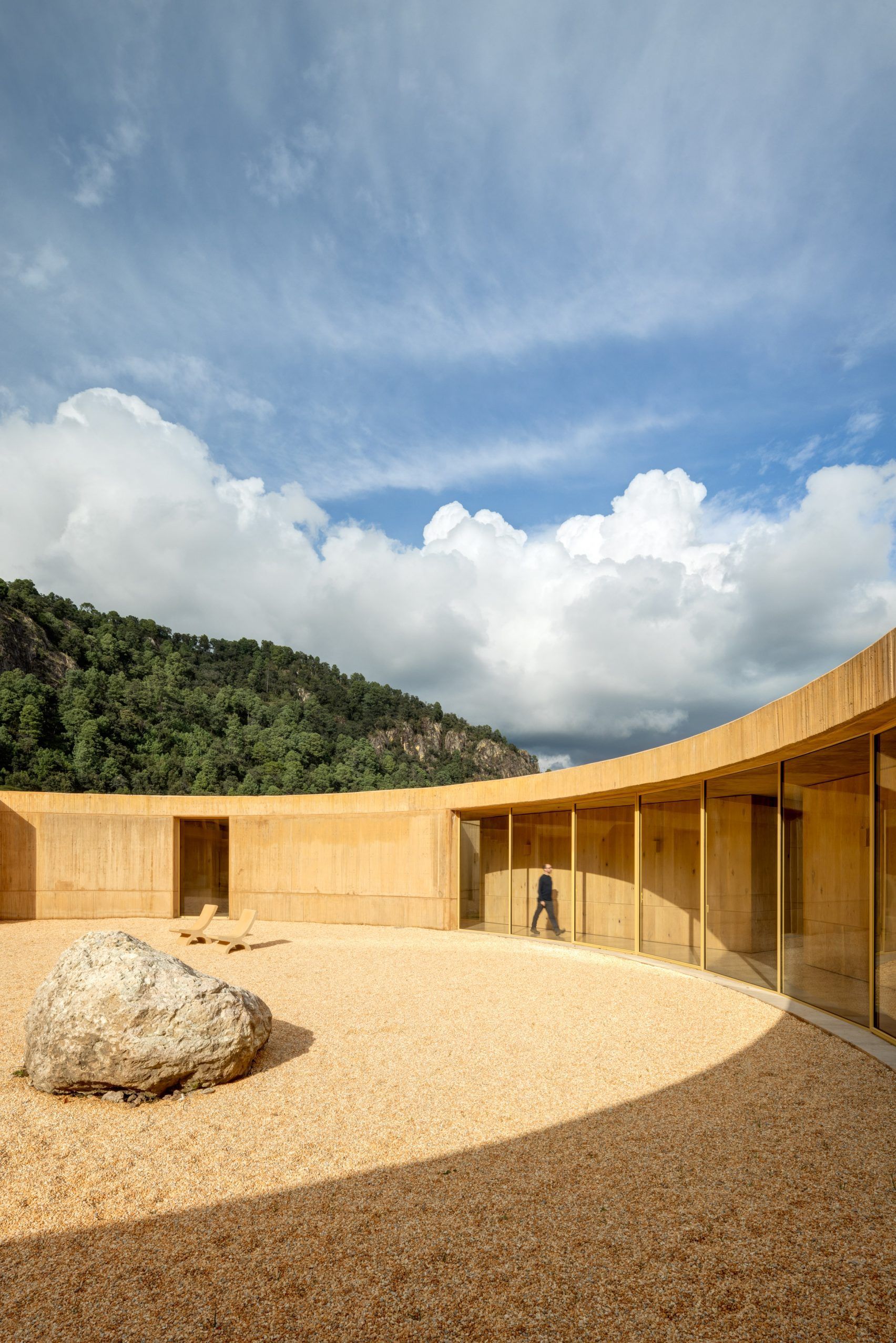 Мексиканська студія спроєктувала житло у формі кільця, яке повністю охоплює внутрішній двір. Така геометрія забезпечує панорамний огляд природних ландшафтів Вальє-де-Браво з усіх боків.