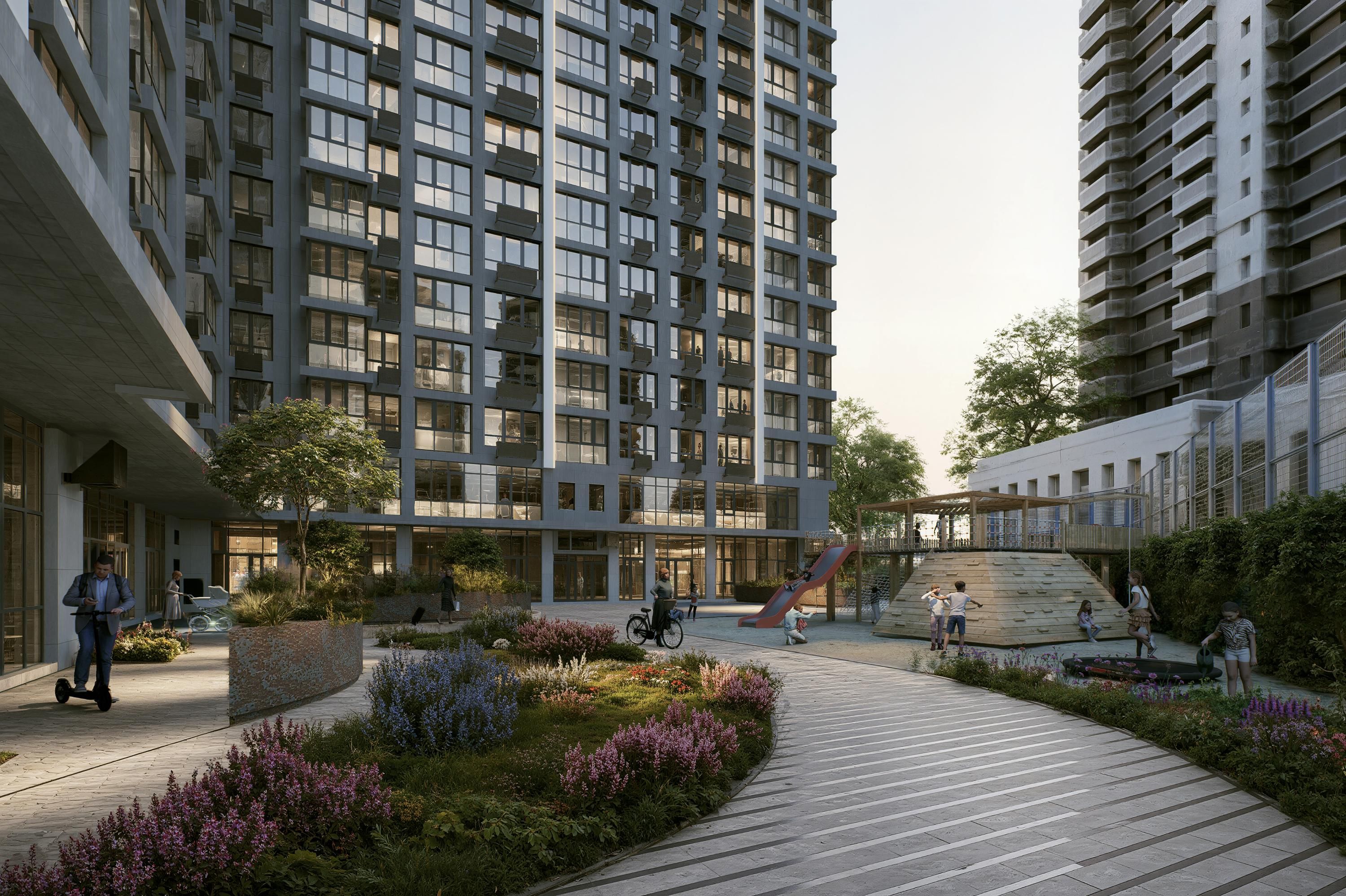 У ЖК є все для щоденного комфорту, без потреби витрачати час на дорогу – магазини та кав'ярні на перших поверхах, зони відпочинку, зелені внутрішні двори, спортивні та дитячі майданчики, простори для дозвілля та спілкування, великий підземний паркінг із зарядками для електромобілів.