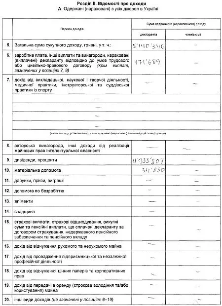 Решту - 4,93 мільйони гривень - Іванющенко отримав як дивідендів та процентів.