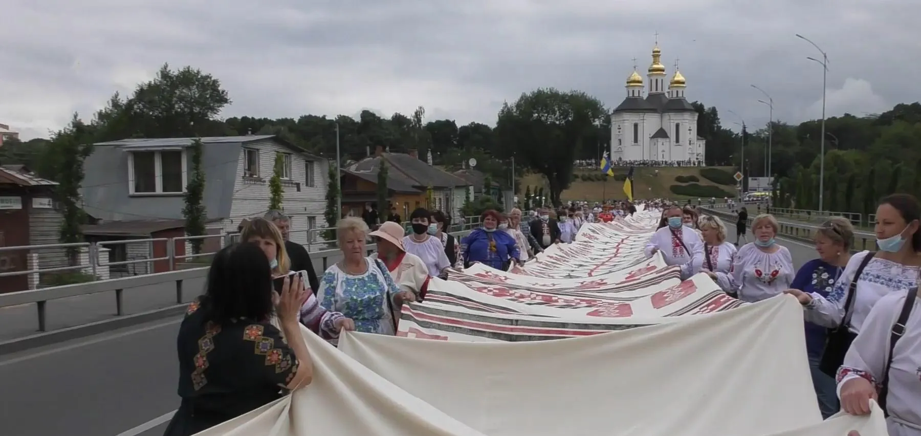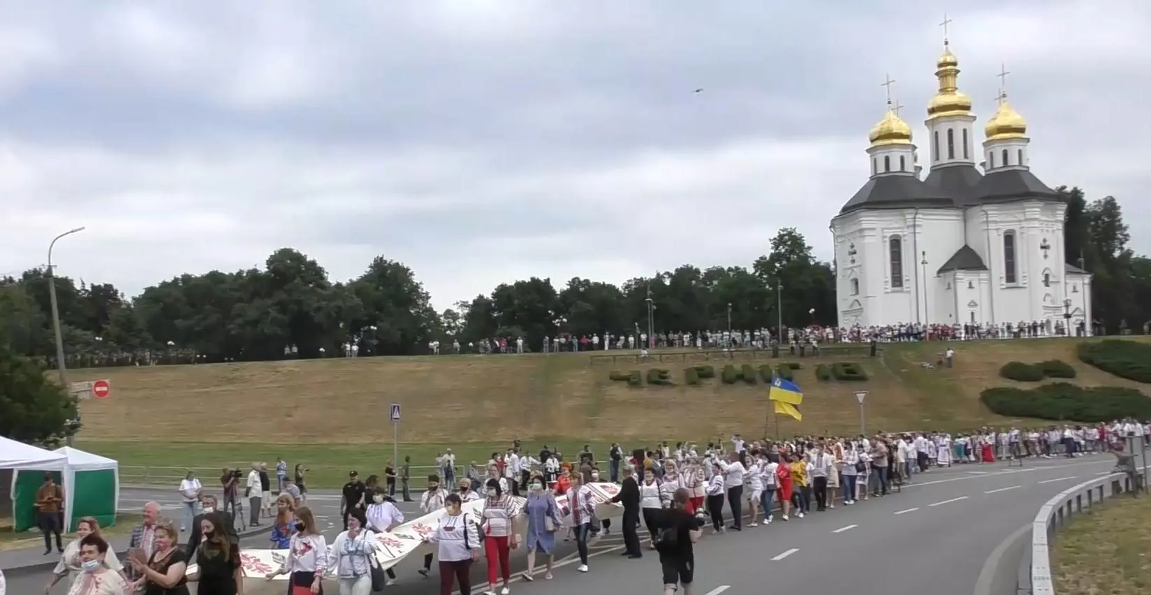 В Чернігові урочисто розгорнули найдовший рушник України: дивіться відео 24 каналу