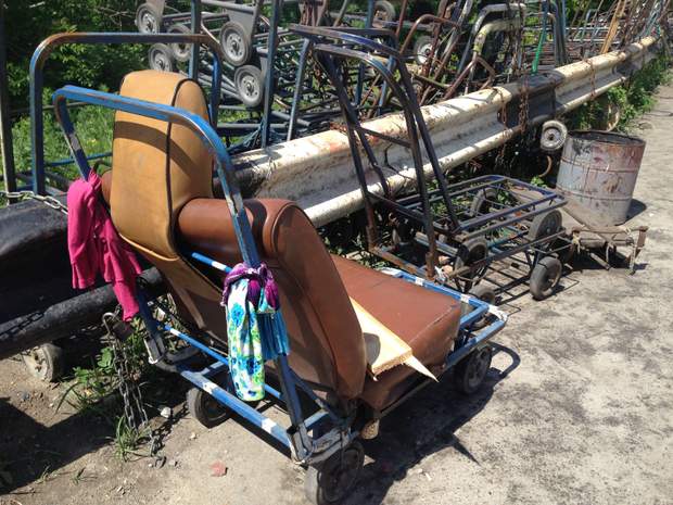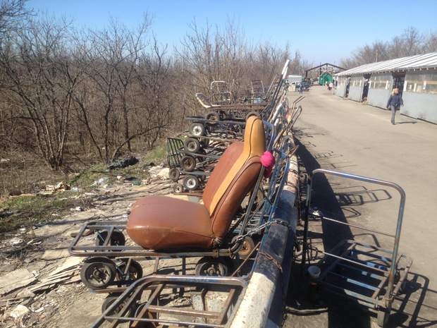 Мост из Станицы Луганской, переполненный тележками для перевозки продуктов