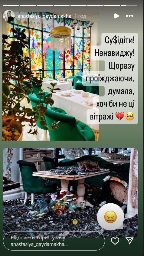 На сторінці закладу викладають сторіз із руйнуваннями. А також ті відео інтер'єру, які встигли зафільмувати відвідувачі.