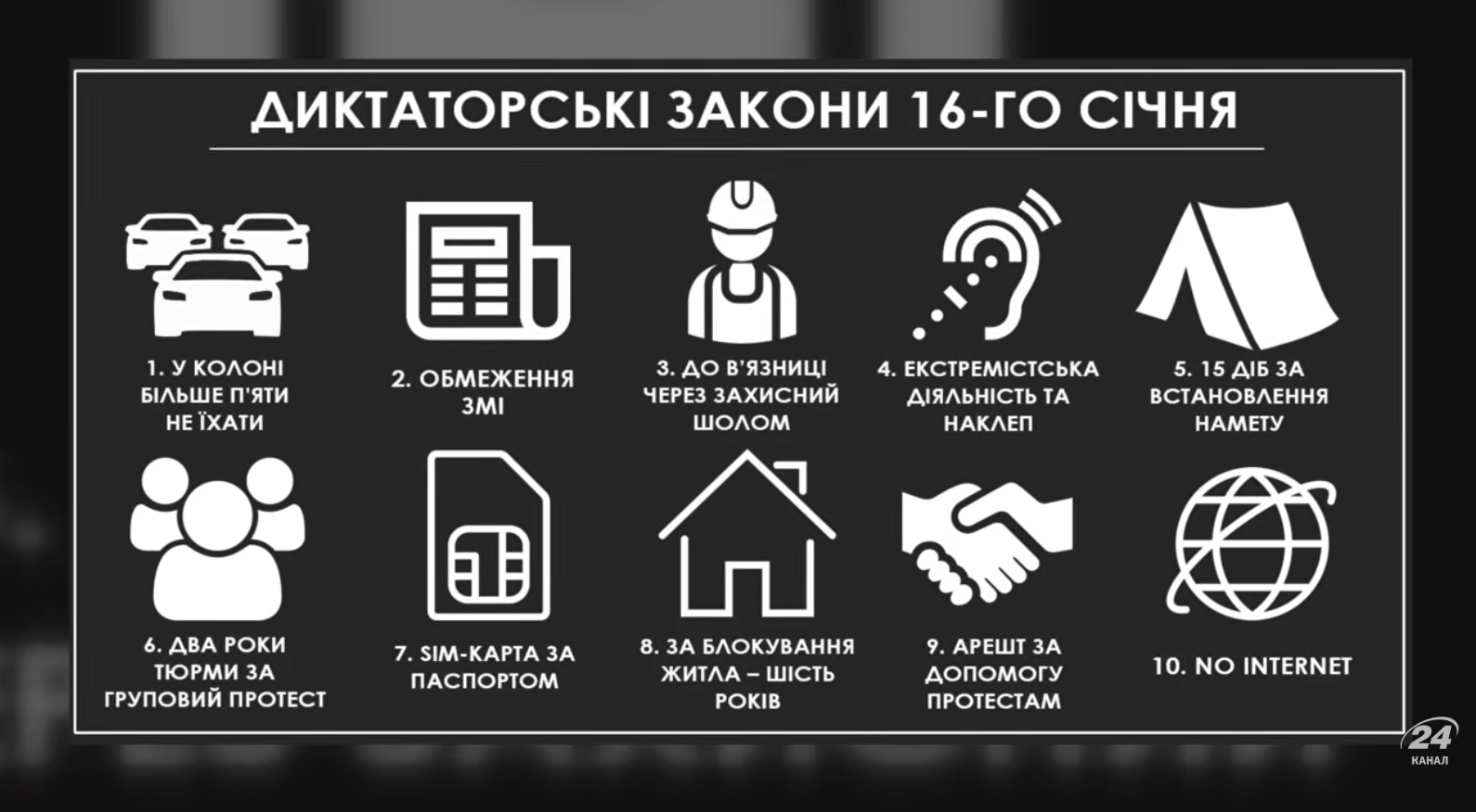 У той день вже дійшло до силового протистояння на Банковій. Янукович намагався врятуватися тітушками та проплаченими антимайданівцями. У відчаї 16 січня Рада голосує за диктаторські закони, які забороняють мітинги та обмежують свободу слова. Але за кілька днів протистояння посилюється.