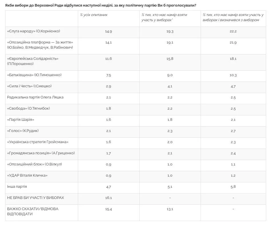 Свіжий рейтинг партій