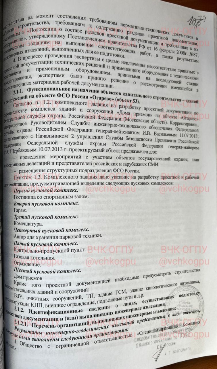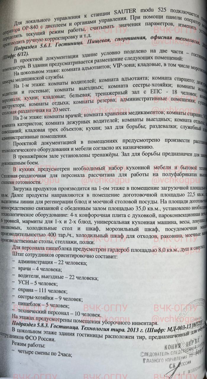 Зазначається, у Росії за розкрадання коштів з цієї резиденції Путіна засудили групу співробітників ФСО та бізнесменів. Більшість матеріалів, зрозуміло, були засекречені. Особливо це стосувалося частини, де детально описаний інтер'єр та інші "нутрощі" "Об'єкта 53".