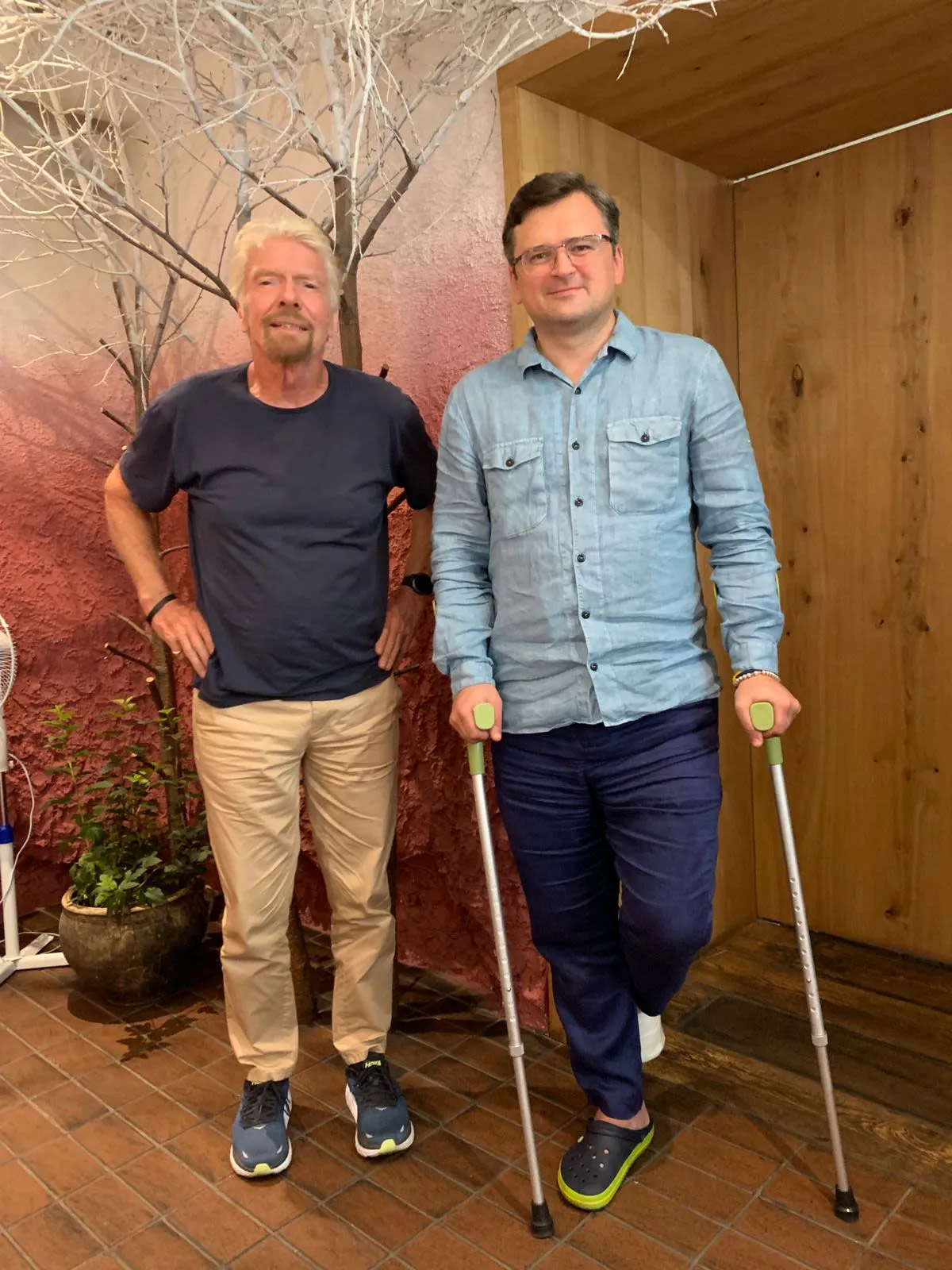Під час свого візиту Річард Бренсон поспілкувався із міністром закордонних справ України. Він згадав про слова Кулеби, якими той назвав двома моделями взаємодії націй одна з одною: "Одна модель полягає в тому, що ви допомагаєте комусь, тому що вони хороші люди, або, тому що вони є частиною сім'ї. Після величезних страждань, які пережила Україна, ми потребуємо визнання та допомоги як частини сім'ї. Як тільки ви усвідомлюєте, що воює ваша родина, ви розумієте, що це ваша війна, і політика, а також оптика зміняться".