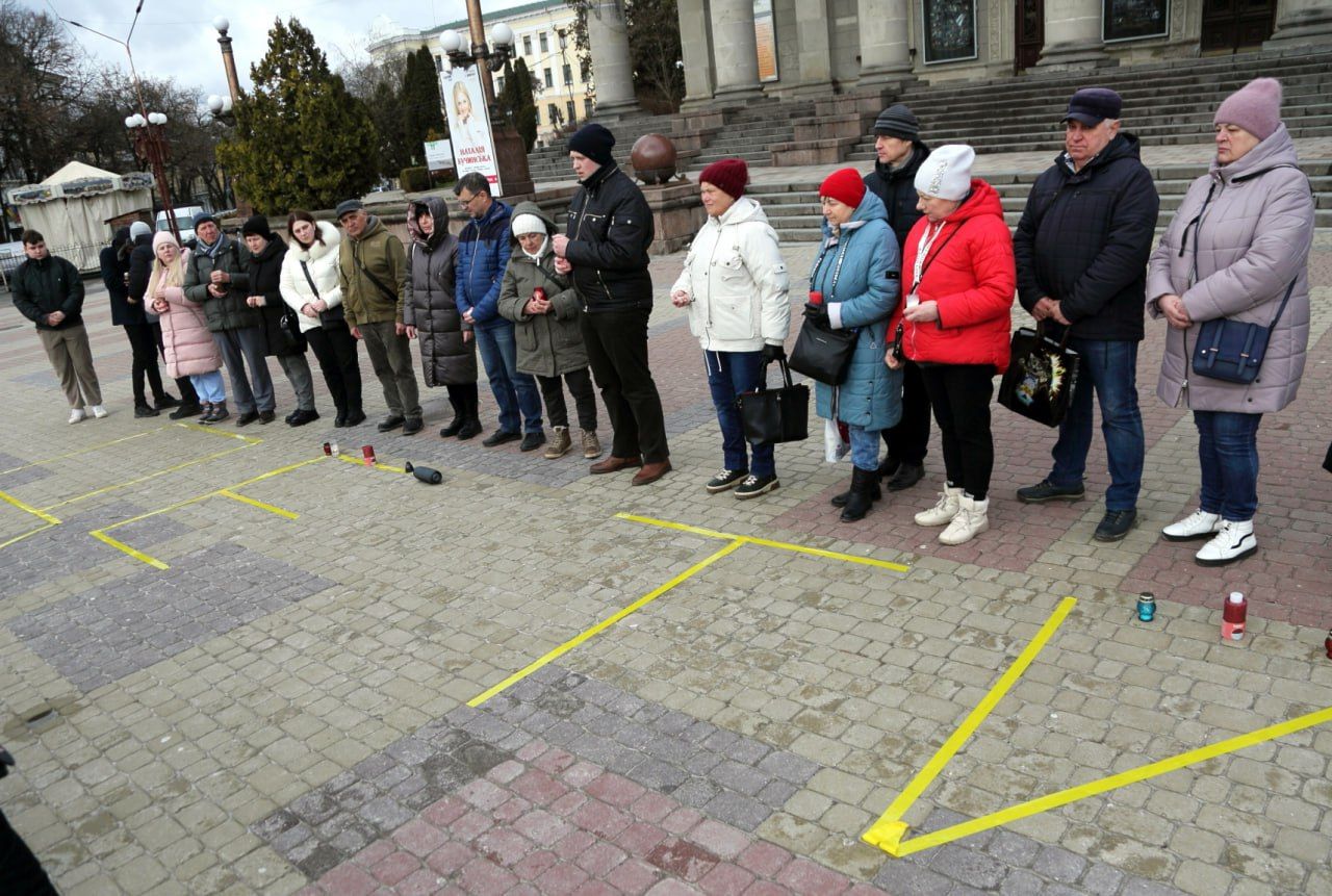У Тернополі вшанували пам’ять загиблих внаслідок жорстокого теракту в Маріуполі. Поблизу міського драмтеатру зібралося кілька десятків жителів Маріуполя та тернополян. Учасники акції створили напис "Де ти", а також принесли з собою лампадки.