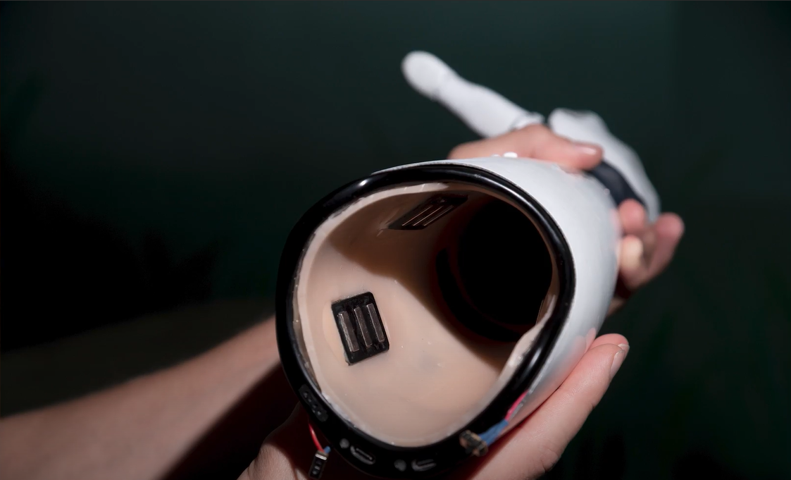 На протезі є пальці, якими можна скролити у телефоні. Що цікаво, два пальці відрізняються від трьох інших. У них є сенсори тиску й елементи, які передають тепло або холод.