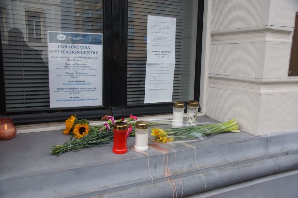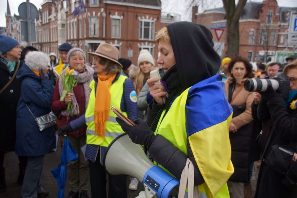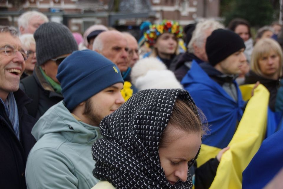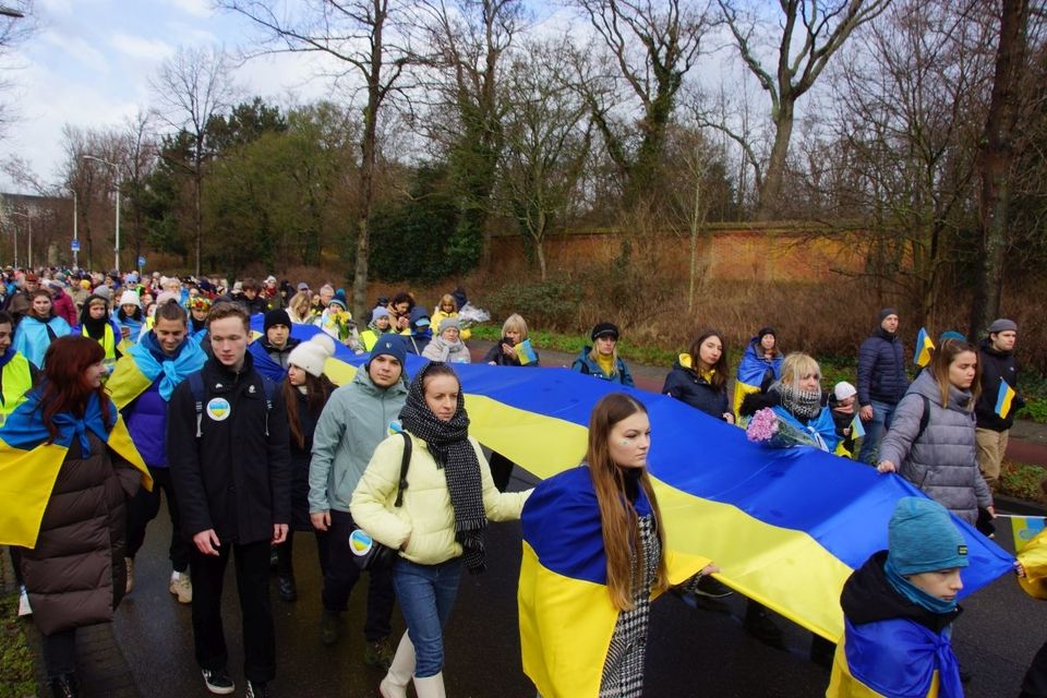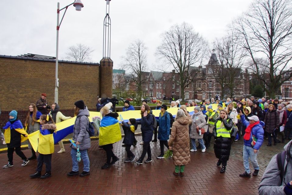 У Гаазі в роковини повномасштабного вторгнення Росії на територію України розгорнули 30-метровий синьо-жовтий стяг. Українці та нідерландці, співаючи гімн України, пройшлися ходою вулицями Гааги з українською символікою, зокрема, повз посольство Росії в Нідерландах, Палац миру та поклали квіти біля посольства України в Нідерландах.