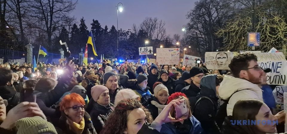 Також мирні акції пройшли у Брюсселі, Бельгія. Близько 5 тисяч людей зібралися у центрі міста 25 лютого для ходи, щоб продемонструвати підтримку Україні.