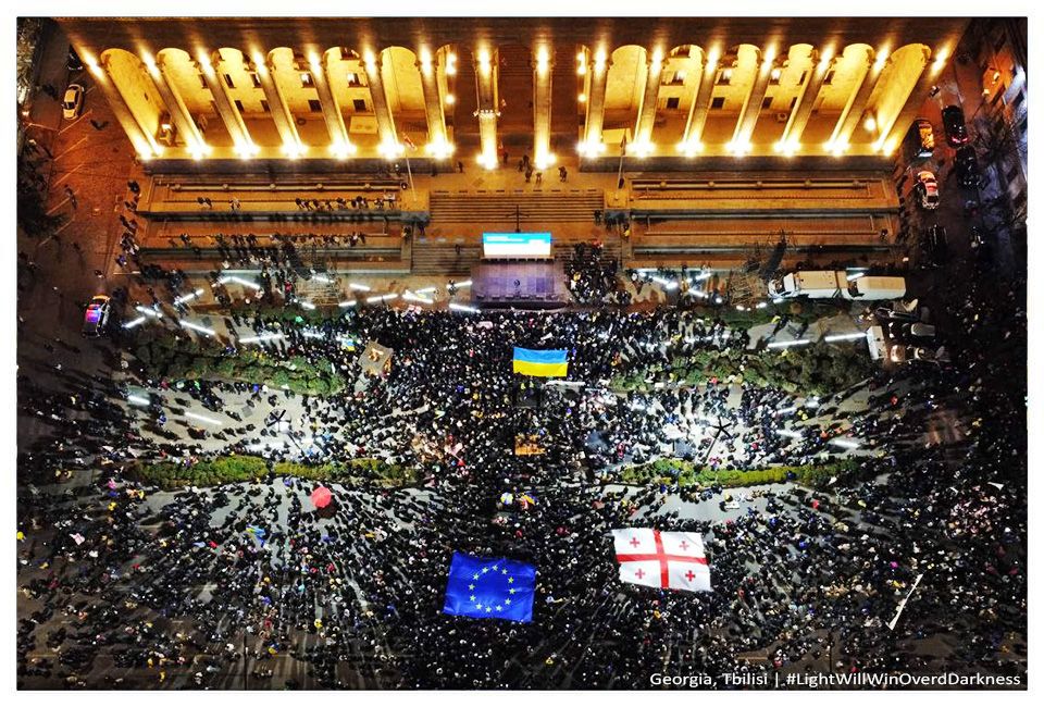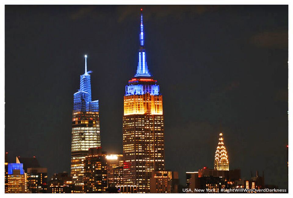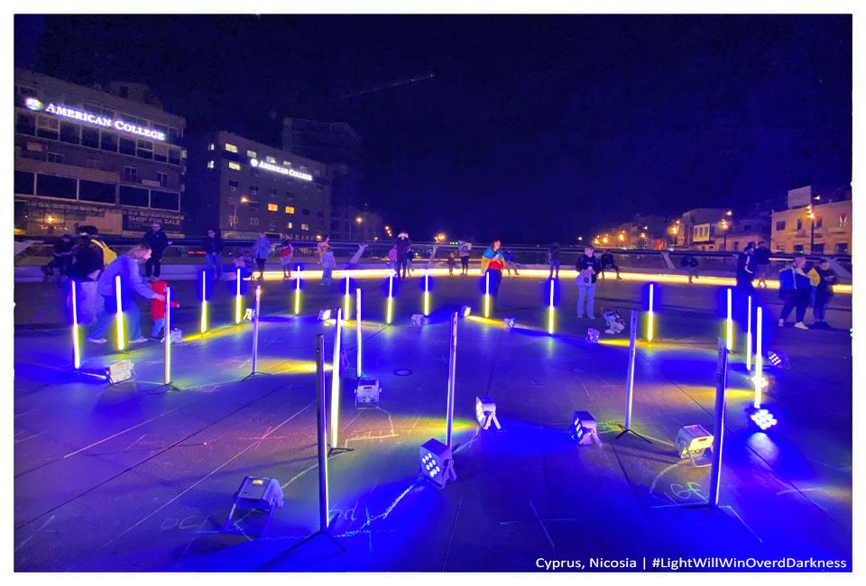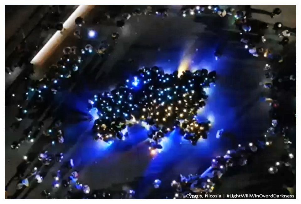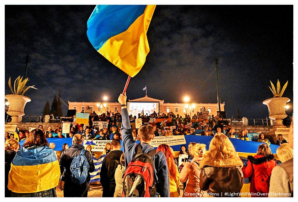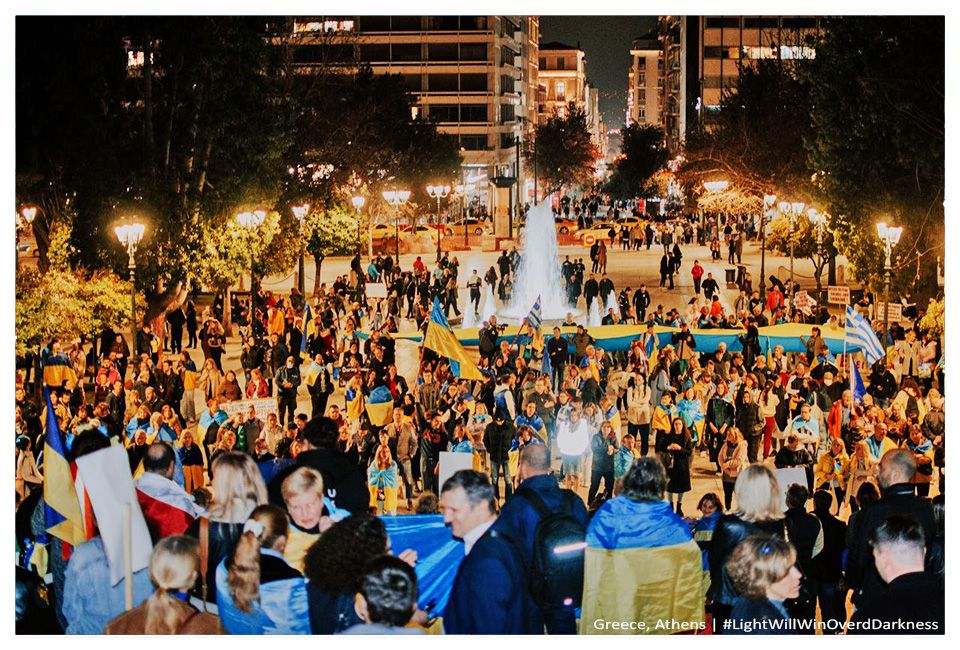 В Афінах члени української громади організували ходу містом та прийшли під будівлю парламенту Греції. Площа враз замайоріла синьо-жовтими прапорами. Учасники акції вшанували пам'ять загиблих у війні українців, ставши у формі карти України. На фото можна побачити, як люди підіймають догори ліхтарики: