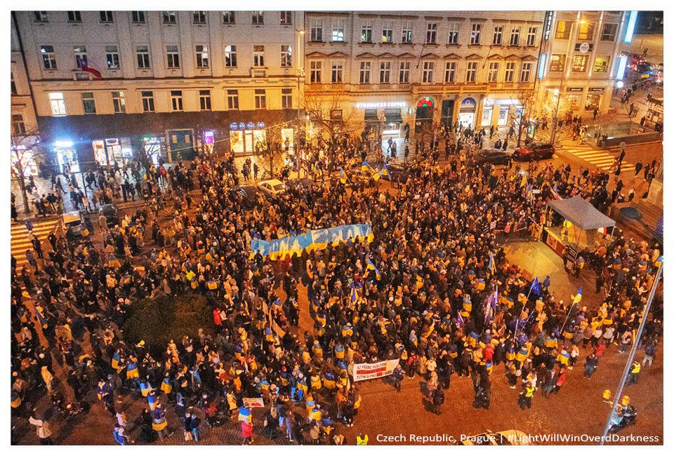 У Празі організація Kaputin влаштувала перформанс біля посольства Росії. Організатори відрубали 2 голови паперовому орлу та закидали кульками з червоною фарбою стіну посольства.