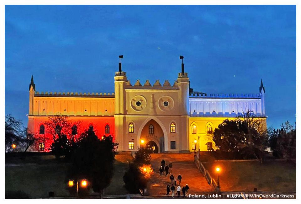 Крім того, міст Бернатка, телевежу і Таурон Арену підсвітили кольорами українського прапора. У Кракові відбувся марш "Разом за мир", наприкінці якого навпроти генконсульства Росії запалили свічки за загиблих українців.