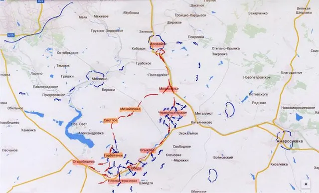 Маршрути, за якими виходили українські підрозділи від Іловайська в Старобешеве.
