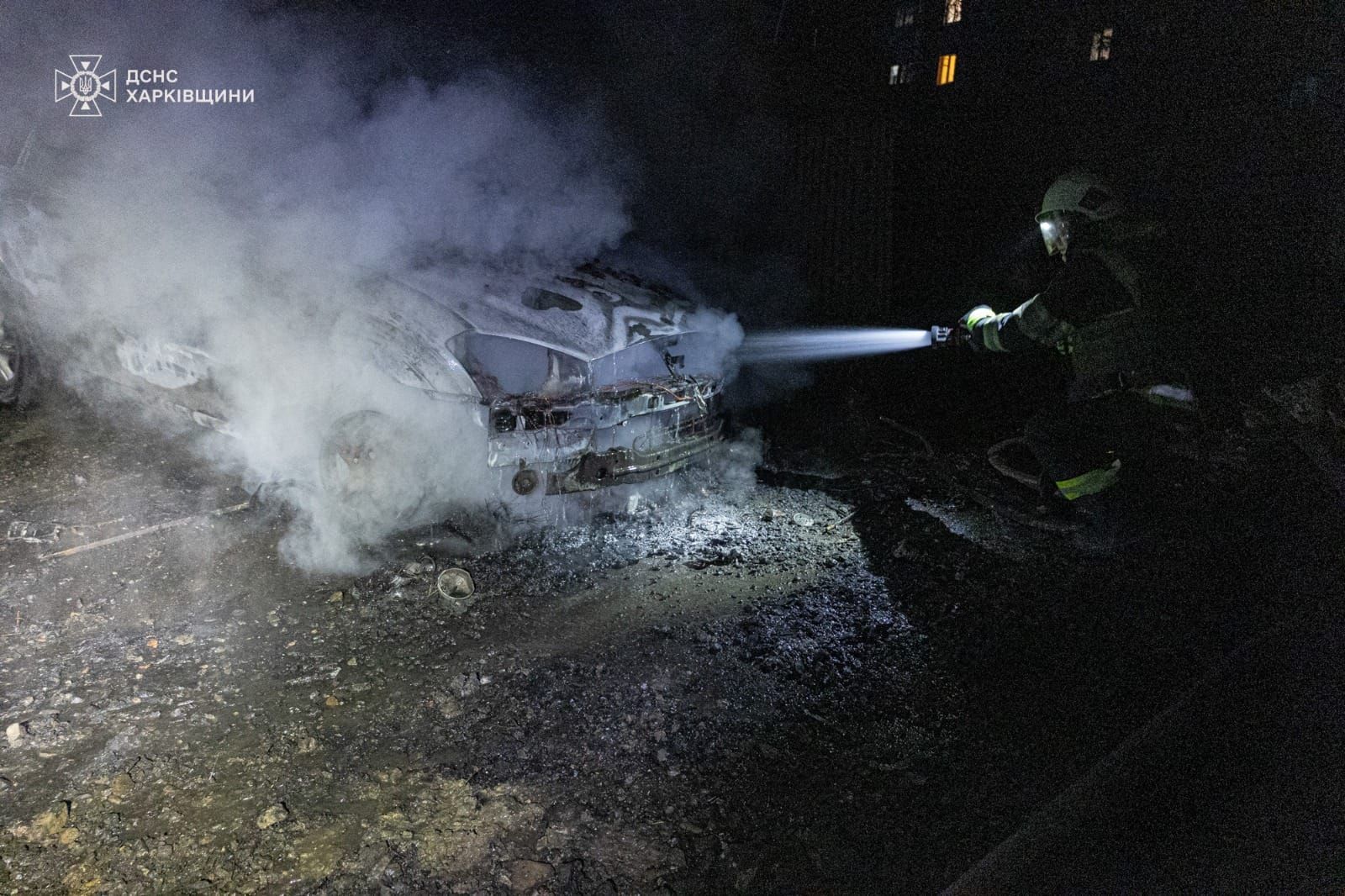 Відомо, що горіли 3 легкові автомобілі поблизу багатоповерхівки на площі 15 квадратних метрів. Крім того, пошкоджено гаражі, автомобілі та вибиті вікна у поруч розташованих житлових будинках.