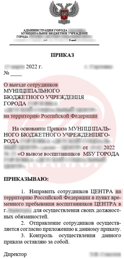 - так званих статусних дітей на Херсонщині, Харківщині та Запоріжжі вивозили примусово згідно з наказами "адміністрації" про евакуацію;