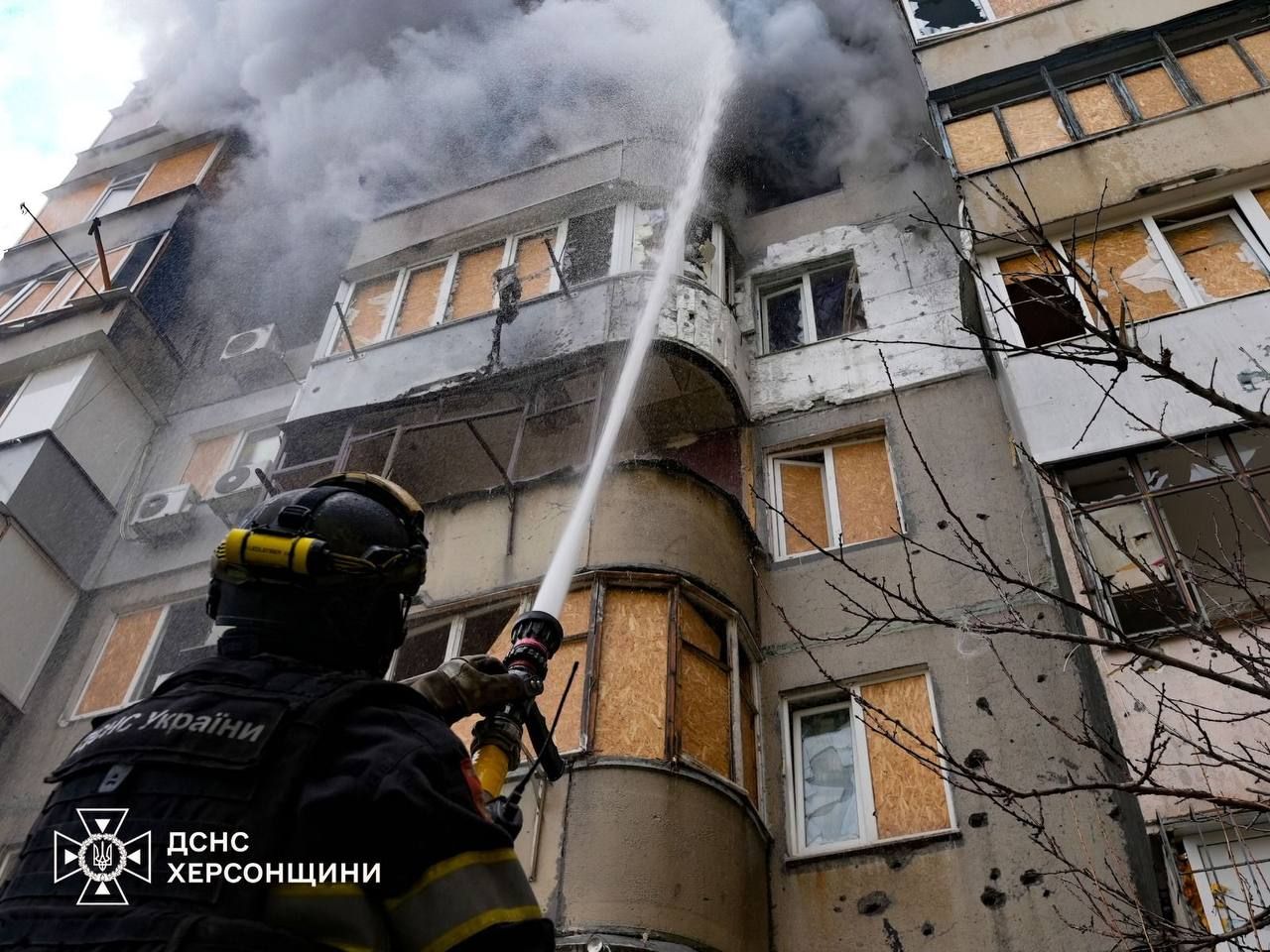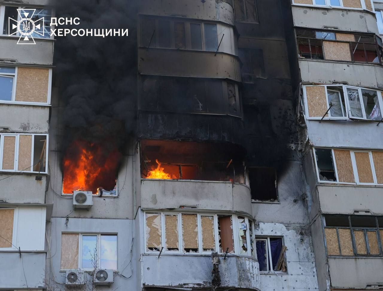Ввечері 14 січня в передмісті Херсона, окупанти запустили безпілотник у одну з квартир багатоповерхівки. Вказується, що полум’я швидко охопило помешкання.