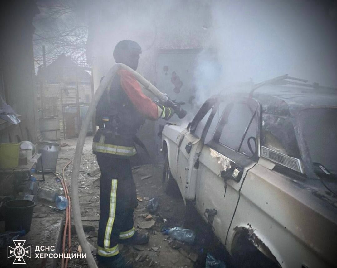 В ДСНС додали, що в той самий час армія країни-агресорки атакувала село Білозерка. Від влучання ворожого боєприпасу, на приватному подвір’ї загорілась господарча споруда та автомобіль.