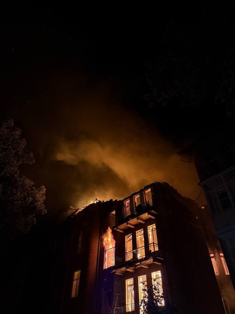 Удар безпілотника спричинив масштабну пожежу, яка знищила житлову чотириповерхівку. Обвалилися перекриття й стіни, під завалами можуть бути люди,