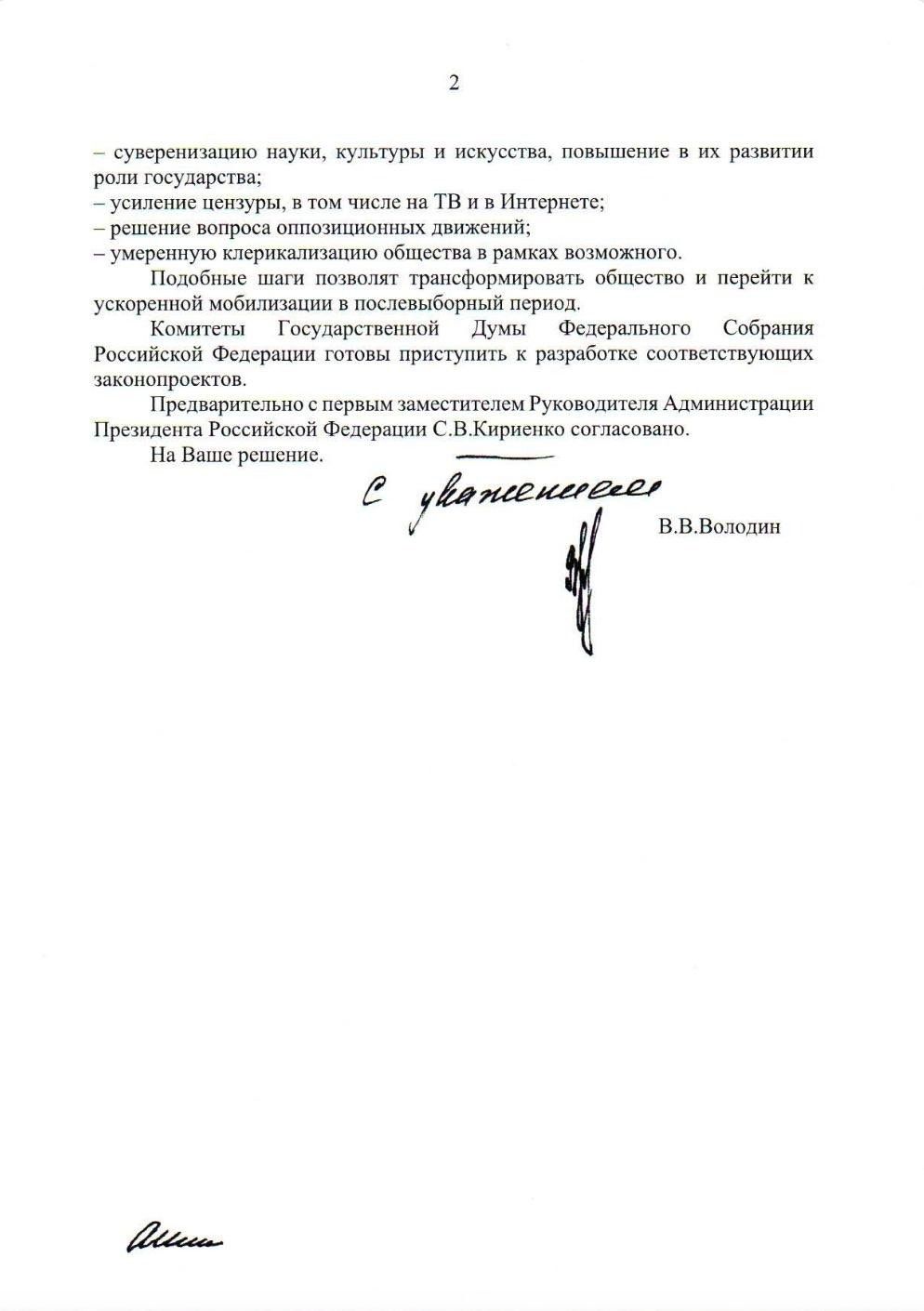 Лист В'ячеслава Володіна до Владіміра Путіна / InformNapalm