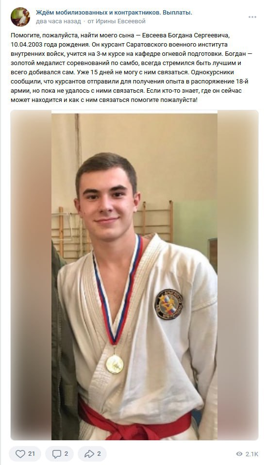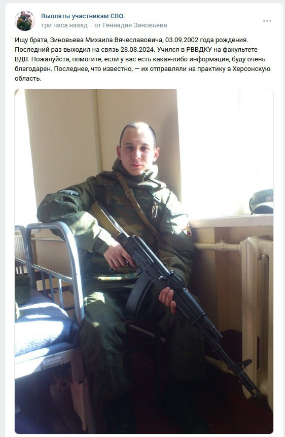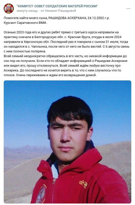 Батьки російських курсантів ВВНЗ почали бити на сполох, бо їх діти перестали виходити на зв'язок. Деякі з них пишуть, що їх зібрали та кинули на Херсонський напрямок та відібрали у них мобільні телефони,