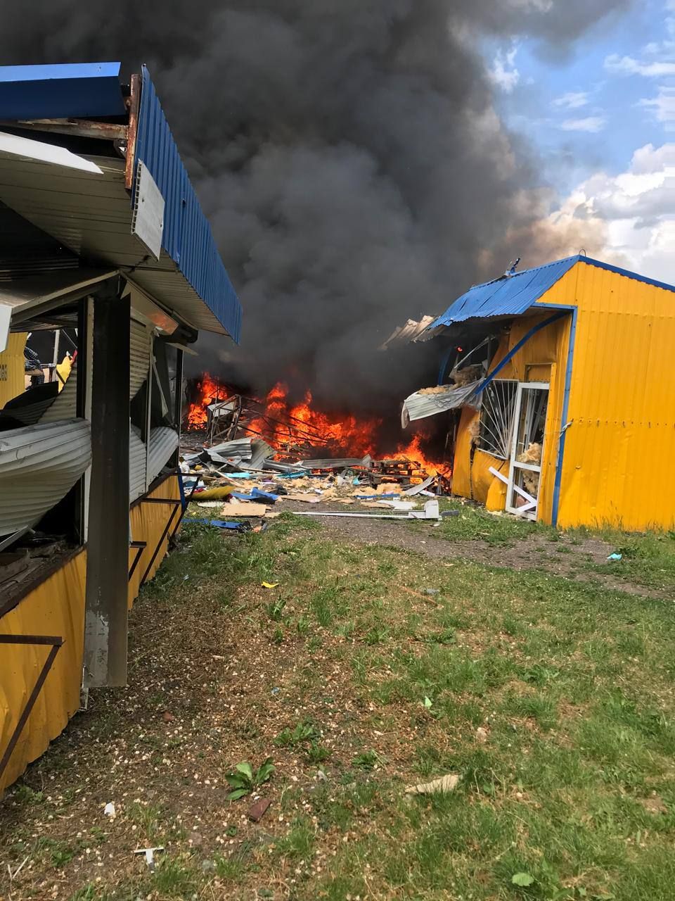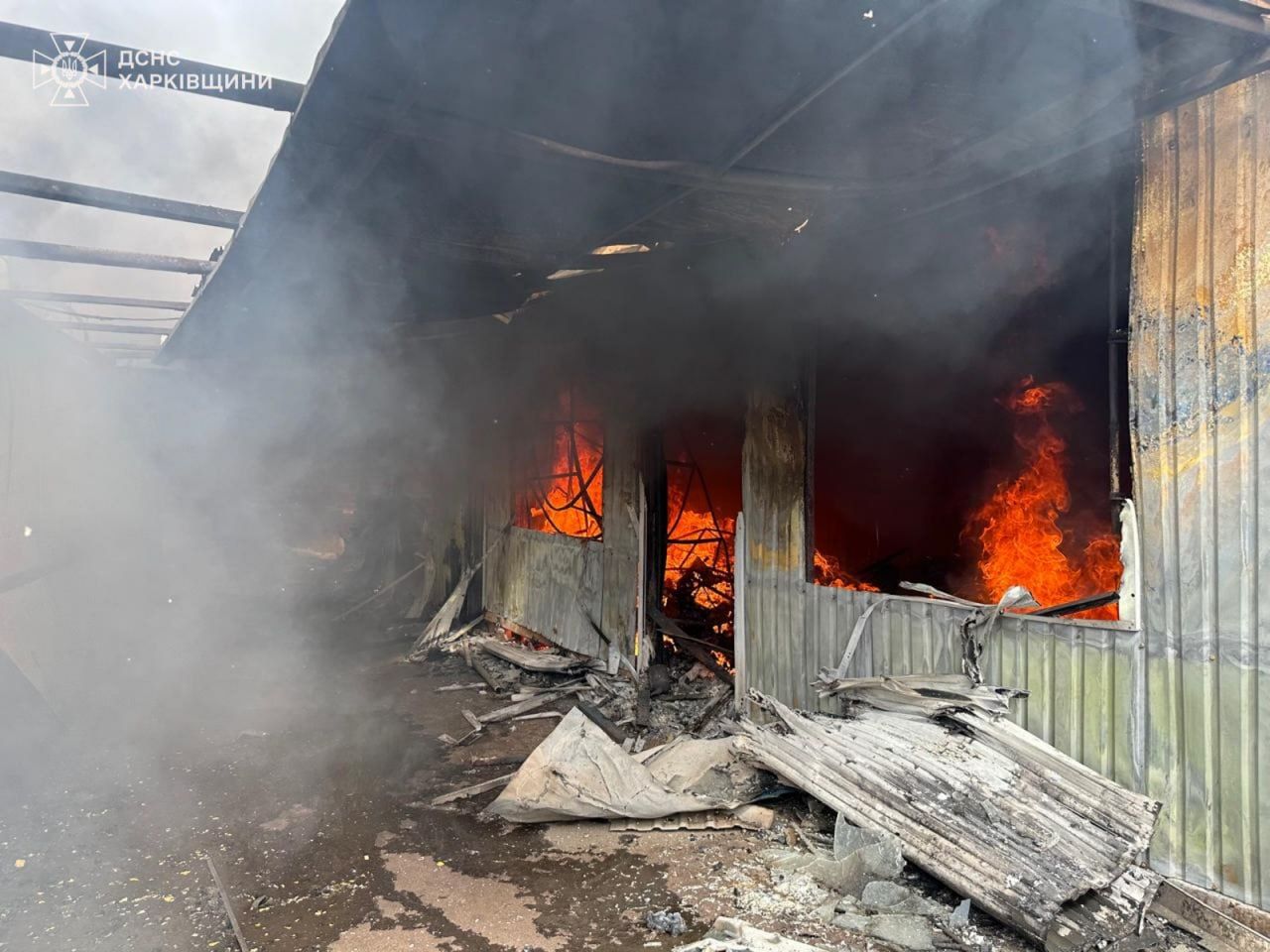 Так, сьогодні, 21 травня росіяни завдали бомбового удару по цивільній інфраструктурі у середмісті селища Золочів, що у Богодухівському районі. Окупанти скинули КАБи на дошкільний навчальний заклад та ринок. Там виникли пожежі площею 400 та 1500 метрів квадратних, а також численні руйнування.