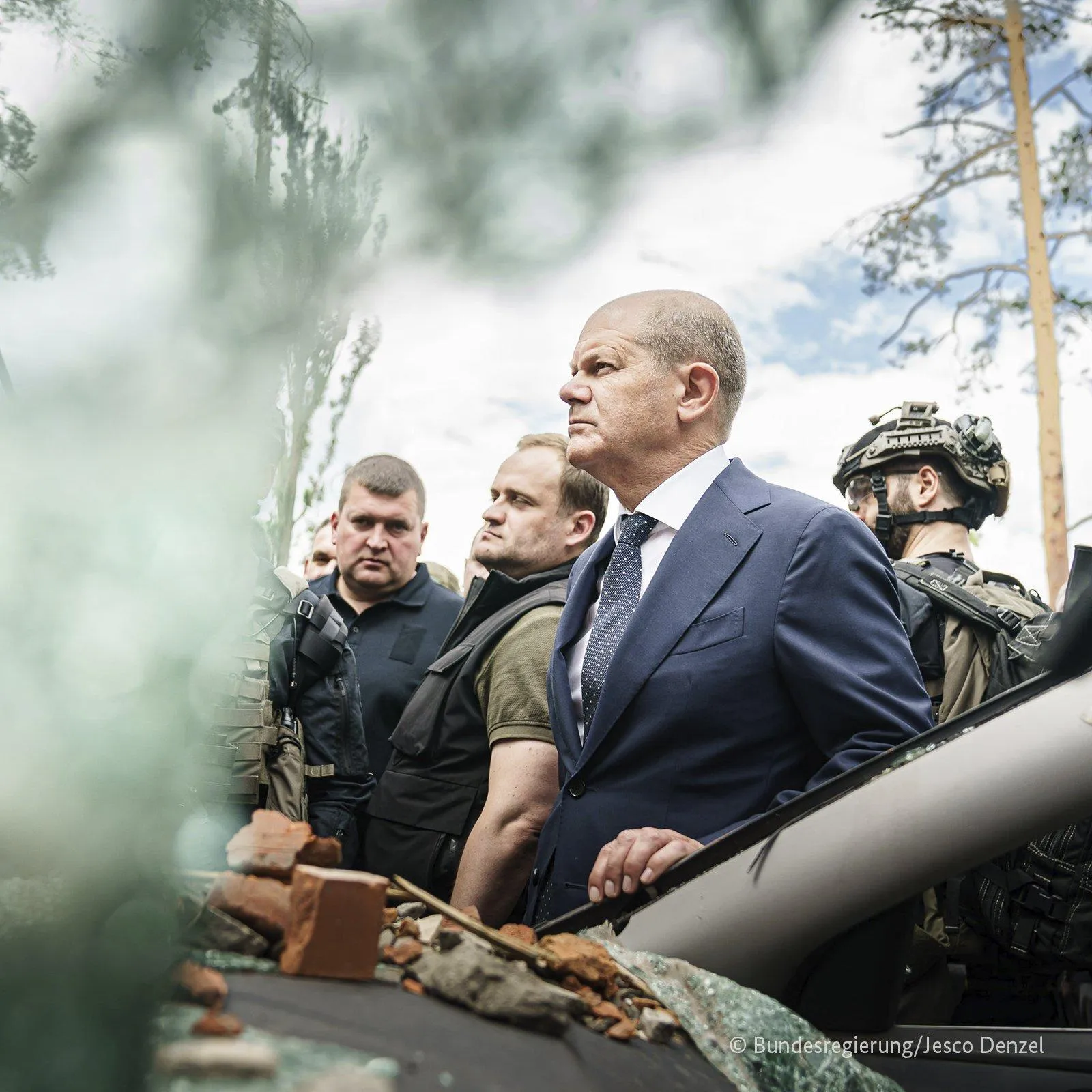 Шольц побачив звірства росіян на Київщині / Фото твітер Олафа Шольца (Jesco Denzel)