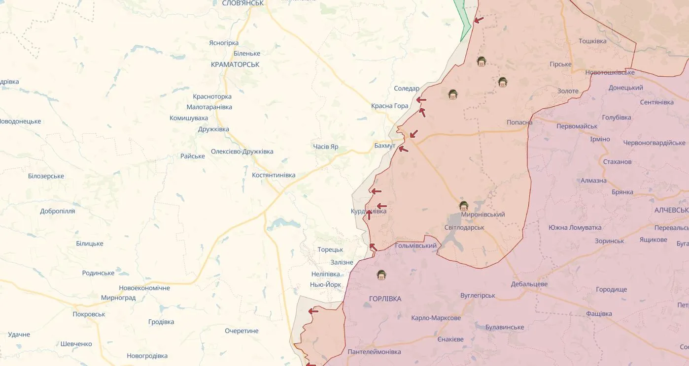 Оточення Бахмута є практично неможливим / Скріншот DeepStatemap