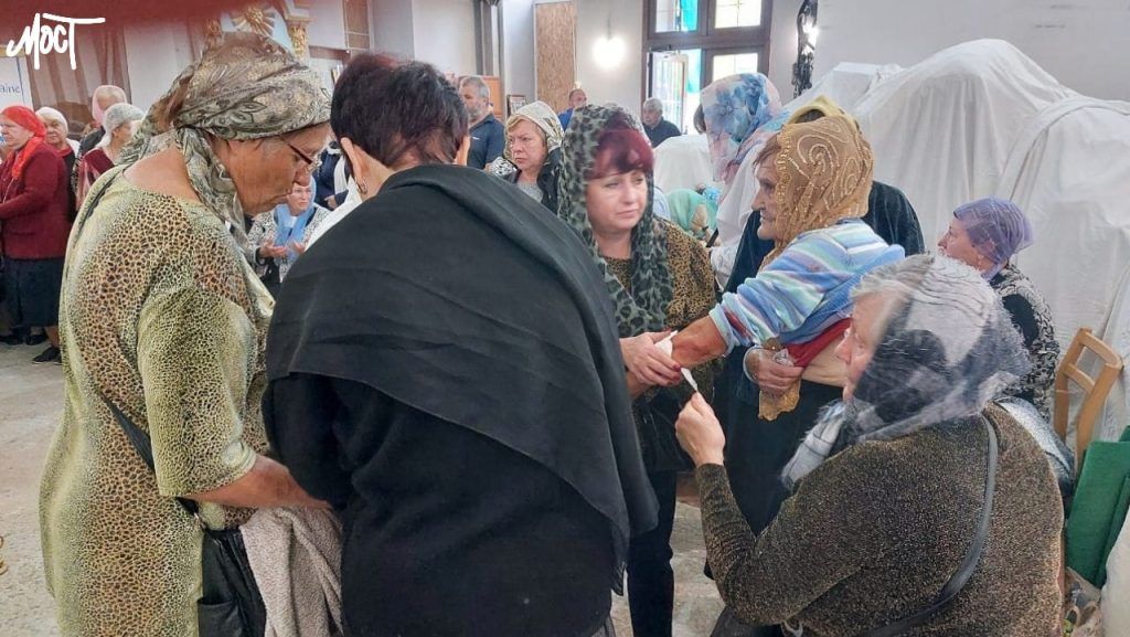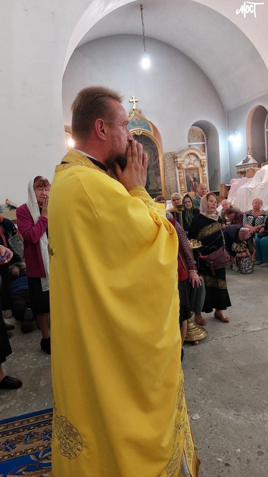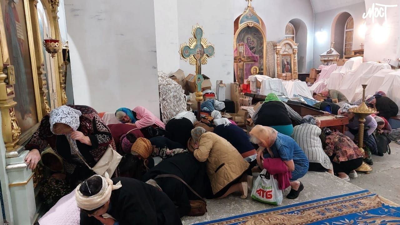 Коли в Херсоні почали лунати вибухи, віряни у церкві відразу почали закриватися від можливих уламків. Багато людей прикривало один одного, аби ніхто не постраждав.