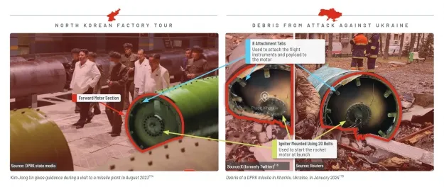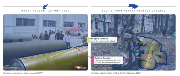 - Експерти ООН також повідомляли, що "уламки ракети, знайдені в Харкові, Україна, 2 січня 2024 року, походять від ракети КНДР серії Hwasong-11".