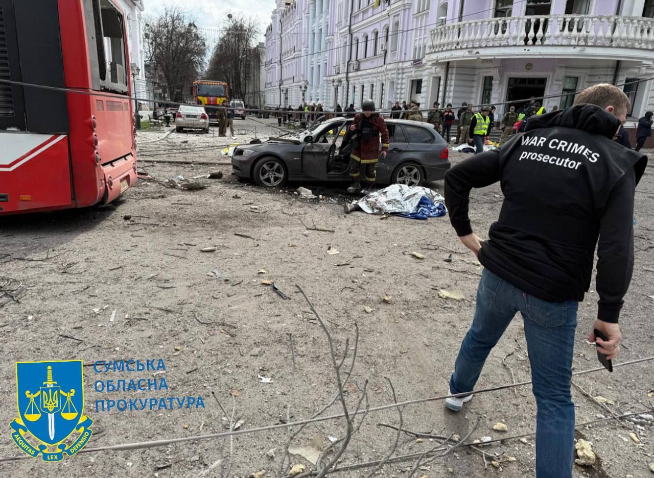 Близько 10:17 13 квітня у Сумах пролунали потужні вибухи. Росіяни вдарили двома балістичними ракетами по центру міста.