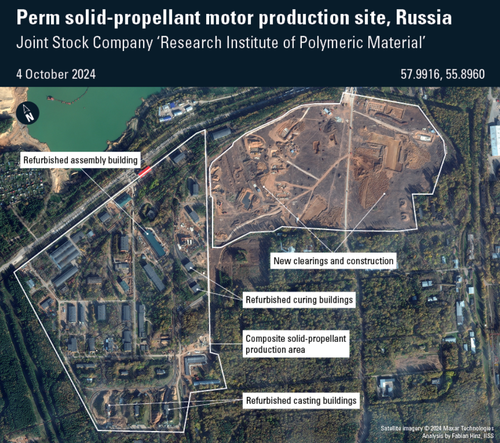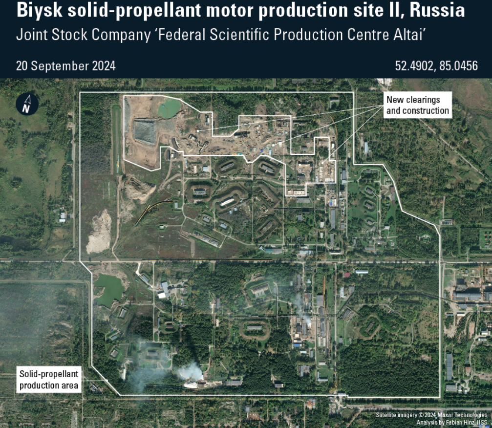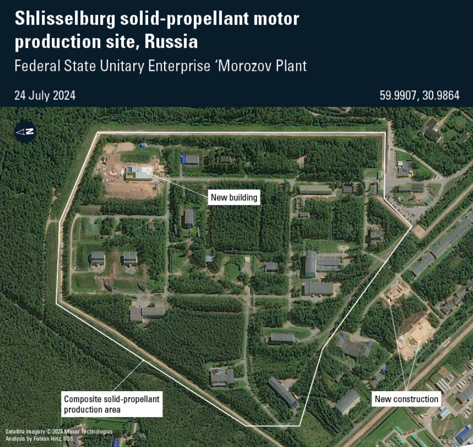 24 Канал пише з посиланням на IISS, що на заводах виробляють твердопаливні ракетні двигуни. Такого висновку дійшли, проаналізувавши супутникові знімки Maxar Technologies, зроблені у липні, вересні та жовтні 2024 року.