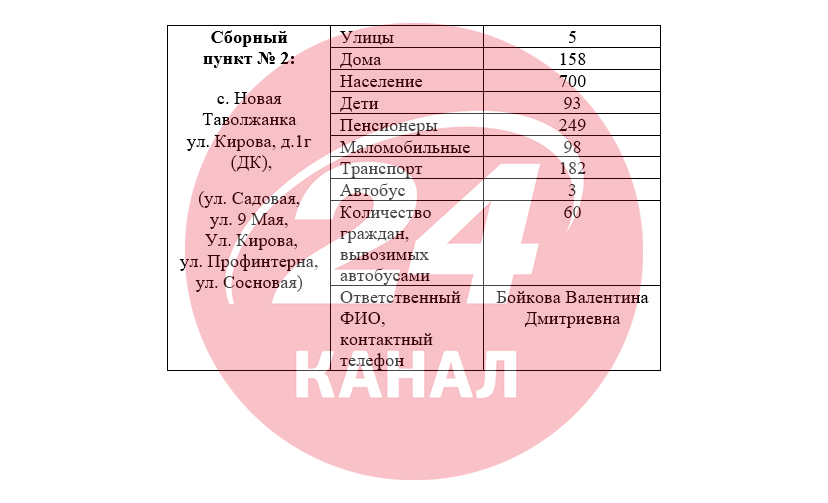 Тепер більше статистичних даних. У документах, які опинилися в розпорядженні нашої редакції, є чіткий план евакуації населених пунктів Шебекінського округу без самого міста Шебекіно. Відповідно до цих планів: