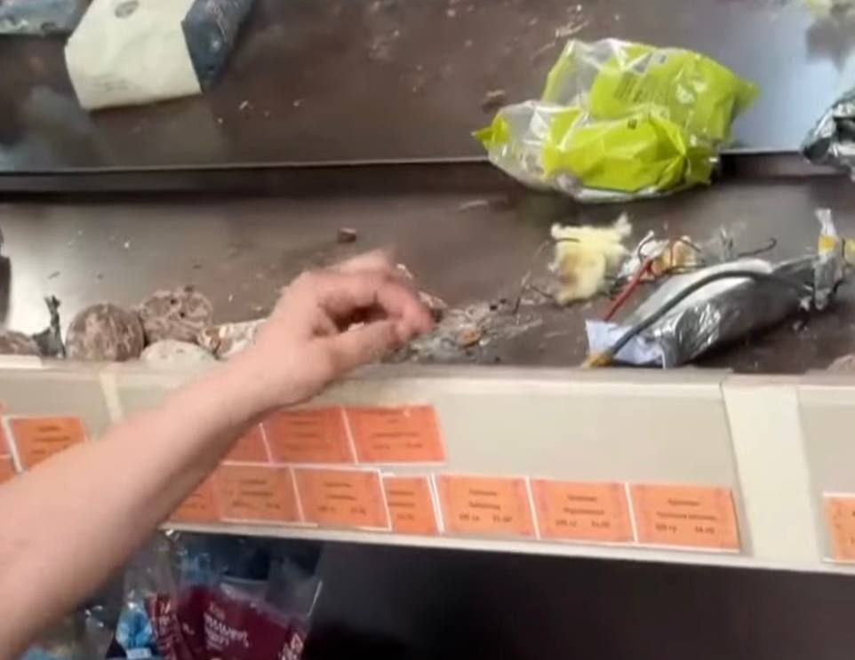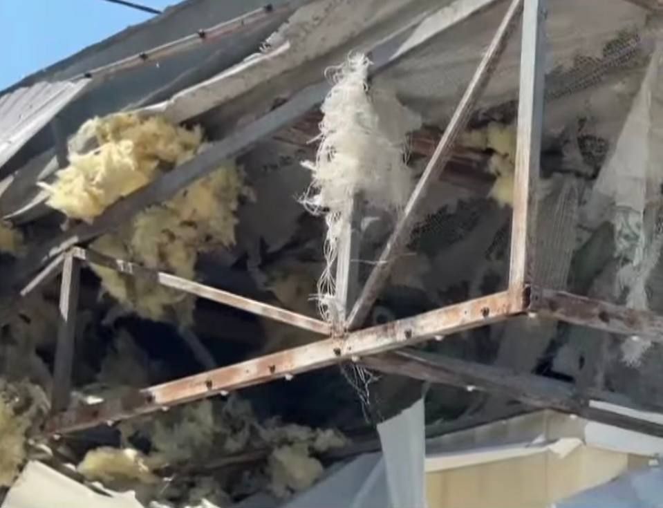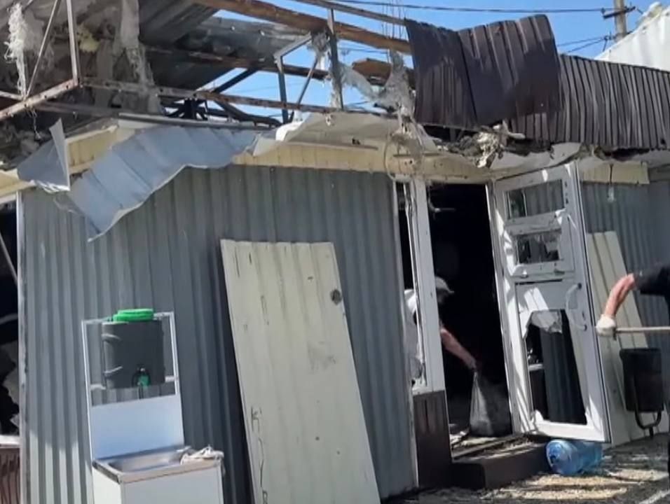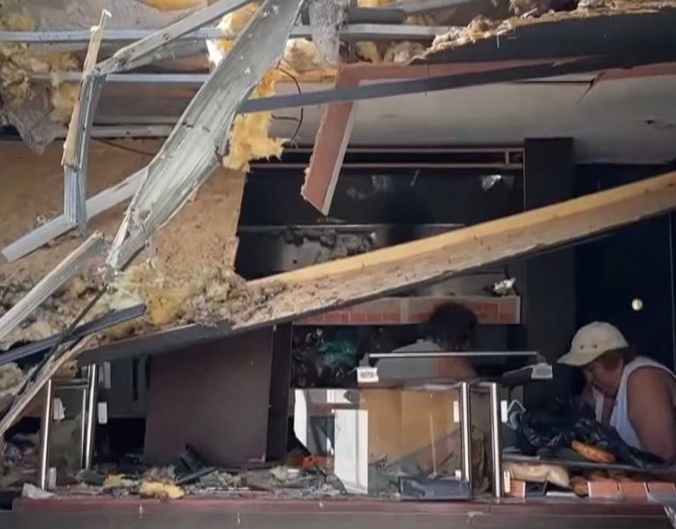Дах пробито. Як кажуть місцеві, ще пощастило, що це був не надто потужний дрон, інакше б люди, які були всередині, – дві продавчині та покупець – могли не вижити. Унаслідок удару троє поранених: в однієї жінки струс мозку та шок, інша отримала поранення склом, так само як і чоловік-покупець.