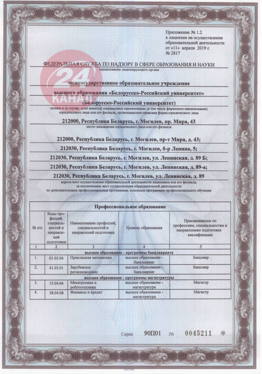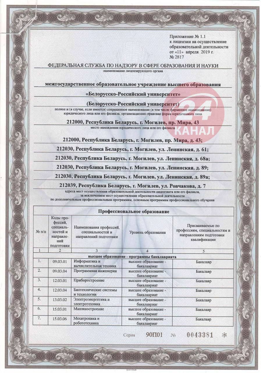 Ліцензія Білорусько-Російського університету / Фото джерел 24 Каналу