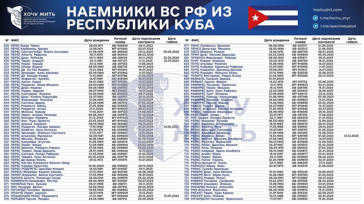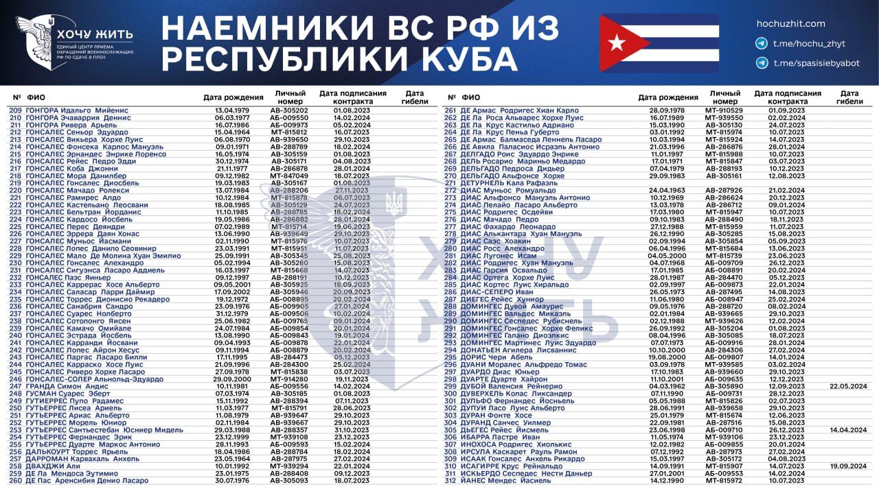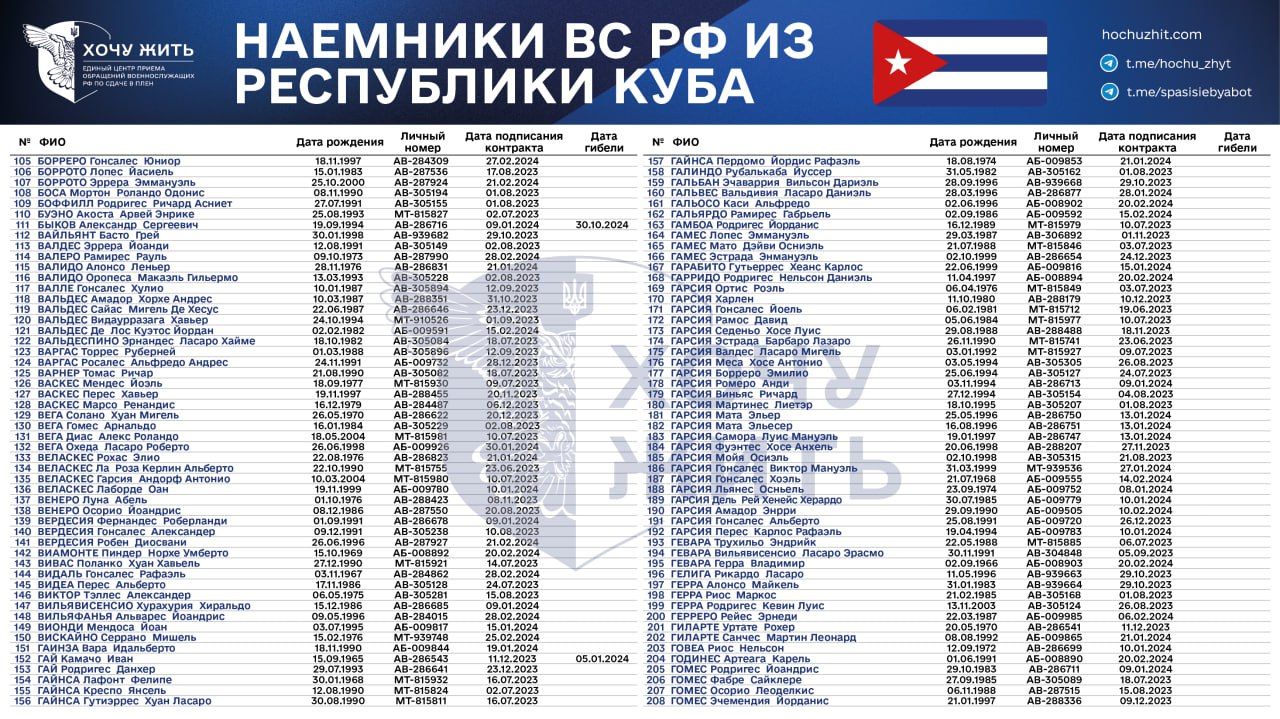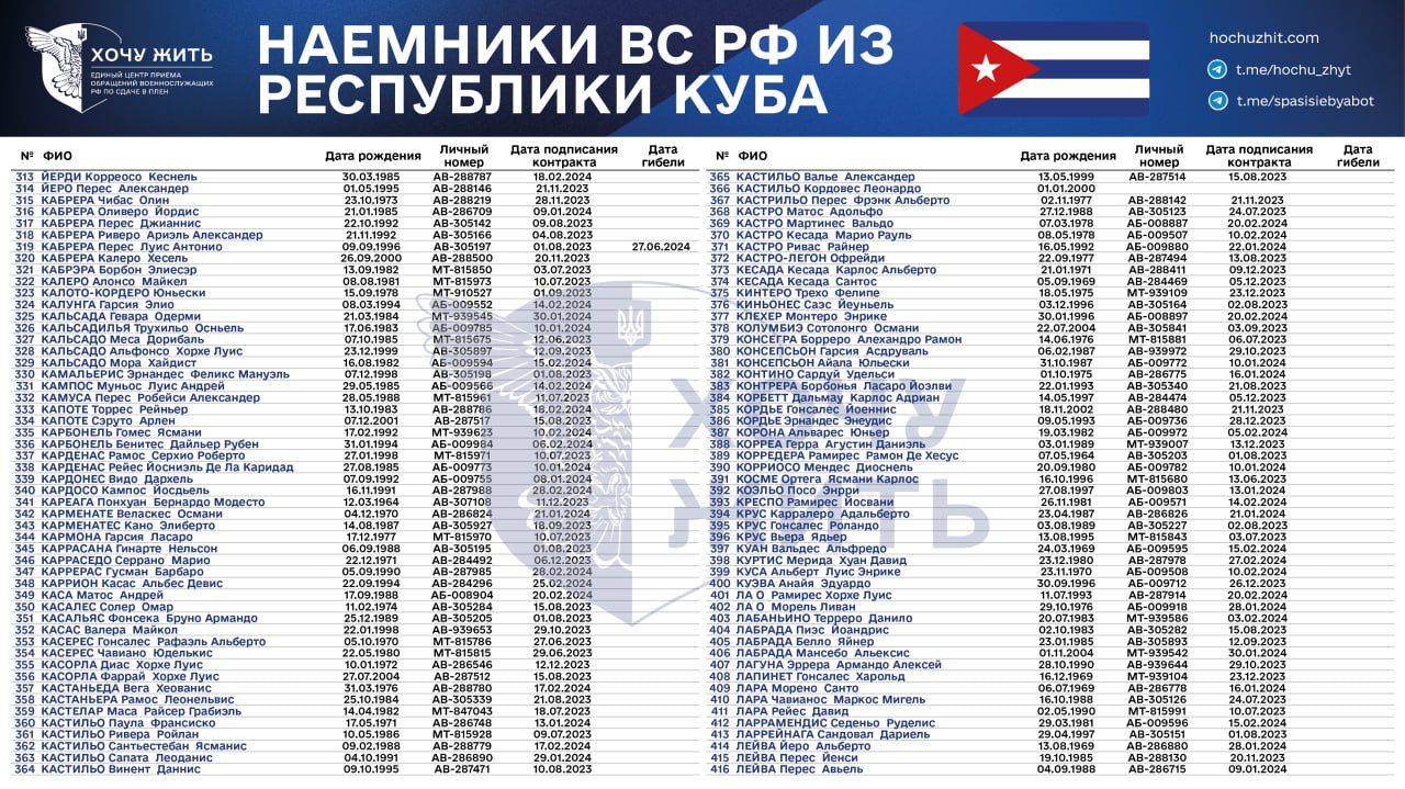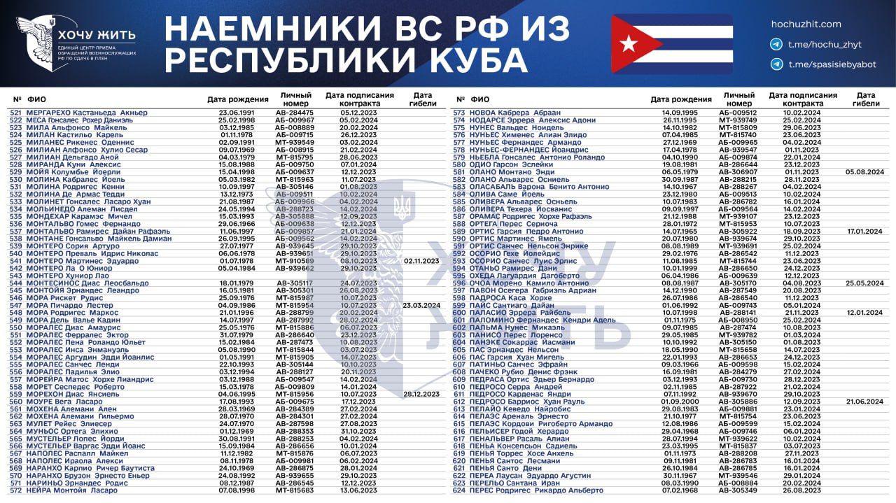 Нам достовірно відомі імена та особисті дані 1028 кубинців, які підписали контракт зі Збройними силами Росії у 2023 – 2024 роках,