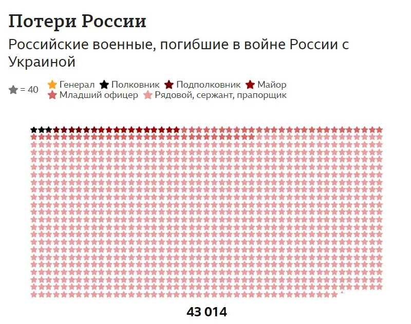 Лише за останні два тижні дослідники підтвердили загибель майже 1,3 тисячі солдатів. Такі втрати "втарая армія міра" зазнала під час ведення війни в Україні.