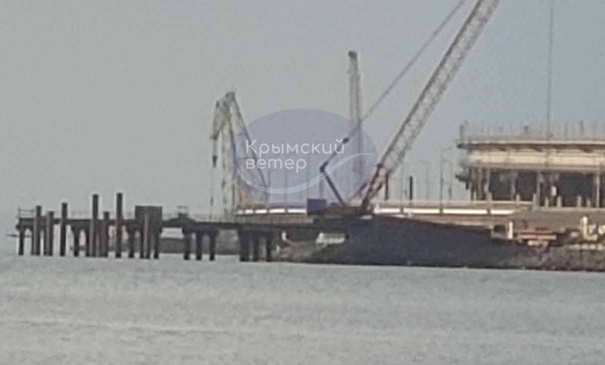 "Наші очі" все бачать: біля Керченського мосту триває будівництво паралельної споруди, яка також нагадує міст. Раніше (6 серпня – 24 Канал) ми повідомляли, що для зведення паралельного мосту забивають палі,