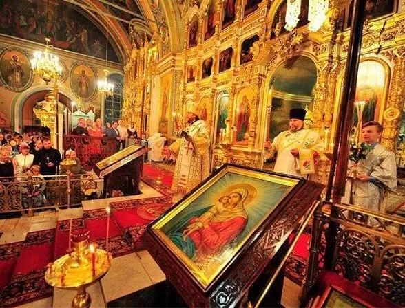 Як видно на фото, у храм на Великдень прийшло багато людей. Місцеві чиновники поставили собі ширму в правій частині церкви, за якою і слухали літургію.