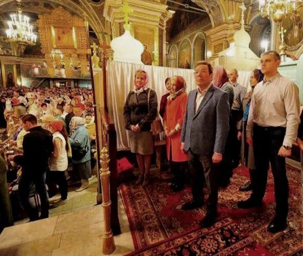 Зазначається, що на відгородженому і закритому від очей інших парафіян місці стояв мер Сизрані Микола Лядін, депутат Денис Кравчук та ще кілька місцевих "аристократів".