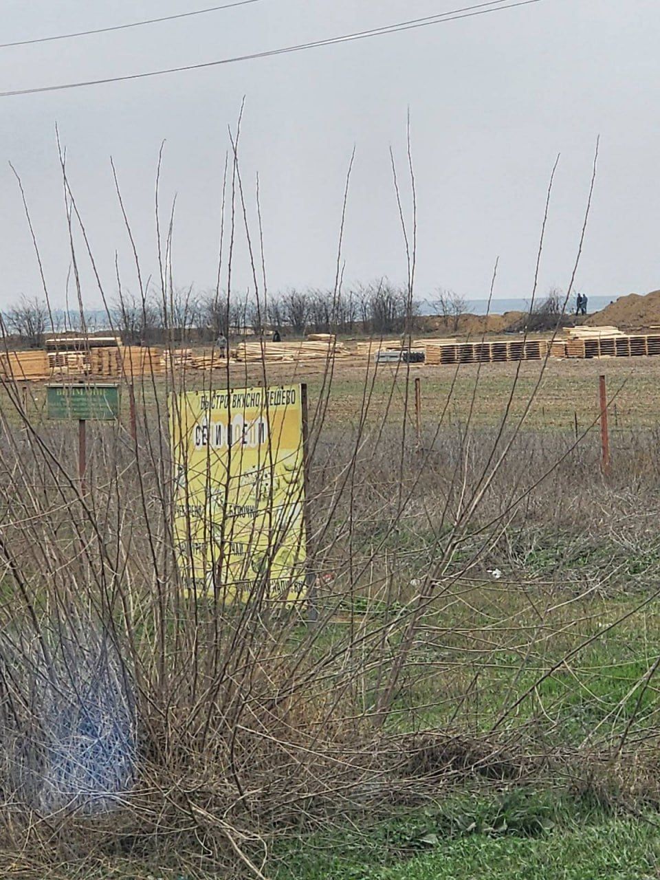 Завезли понад вагон лісу, збивають опалубки, ймовірно, для бетонних робіт. Навпроти, через дорогу риють чергові окопи,