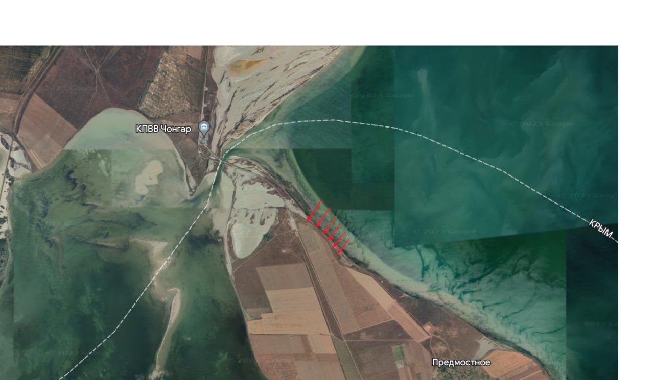 Окрім цього фортифікаційні споруди та окопи вороги риють навіть недалеко біля Чонгара, що в Генічеському районі Херсонської області. Варто зазначити, що це фактично в'їзд до Криму зі сторони материкової України. Адже Чонгар є останнім селом на автошляху міжнародного значення М18E105 перед Чонгарським мостом до Криму.