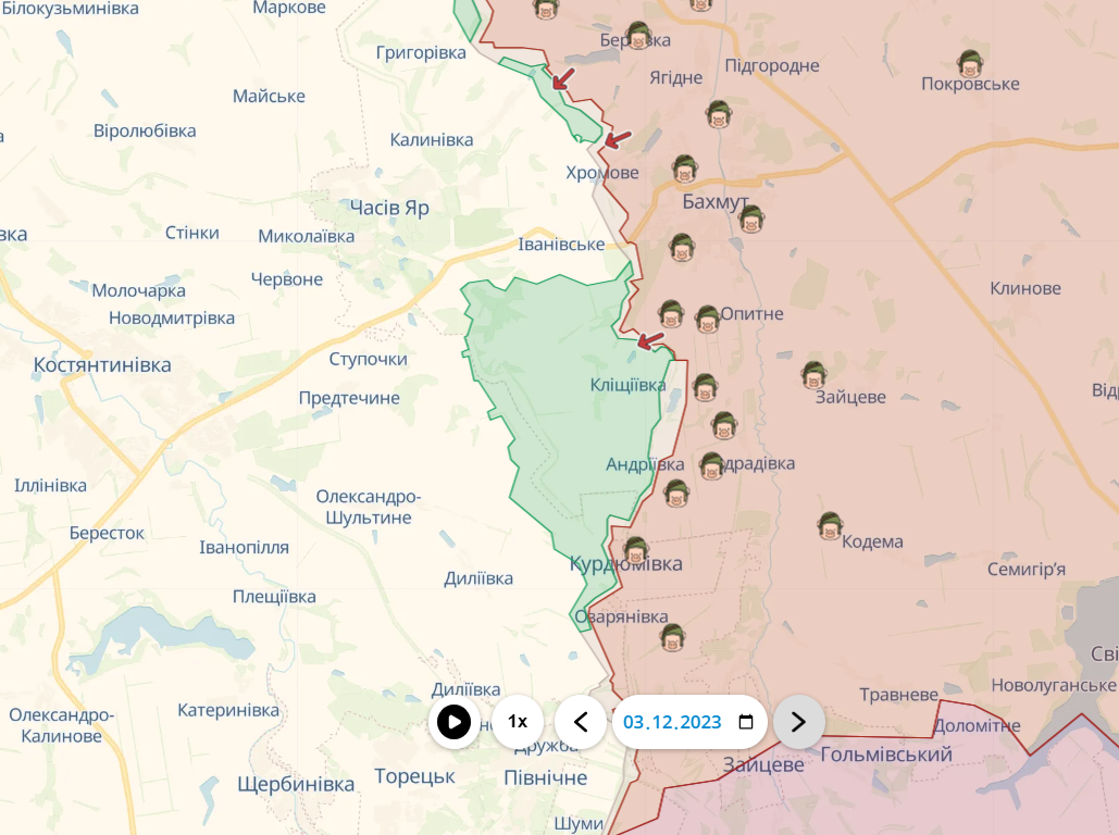 Крім того, ворожі війська просуваються й у бік Богданівки. Не зупиняються росіяни й на південному фланзі від Бахмута. Тут ворог має намір знову захопити Кліщіївку та Андріївку, які Сили оборони України звільнили лише у вересні.
