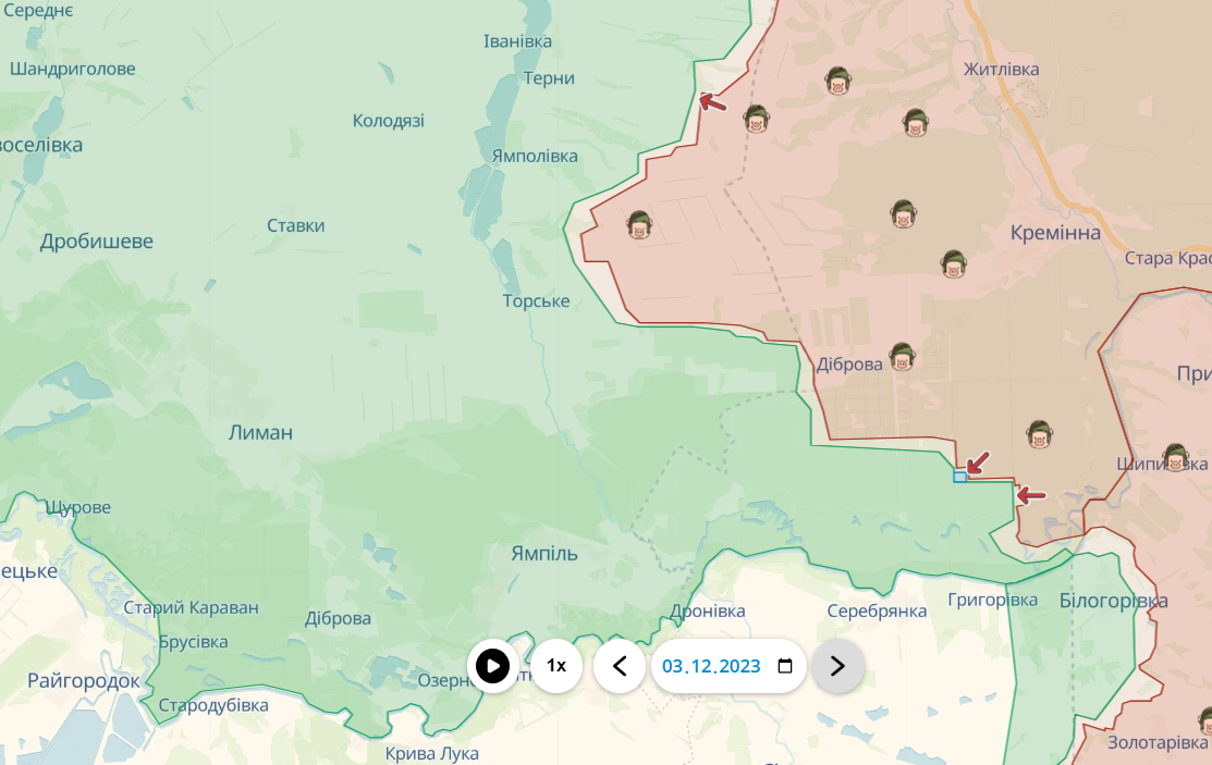 Наступ росіян на Лиманському напрямку: дивіться карту