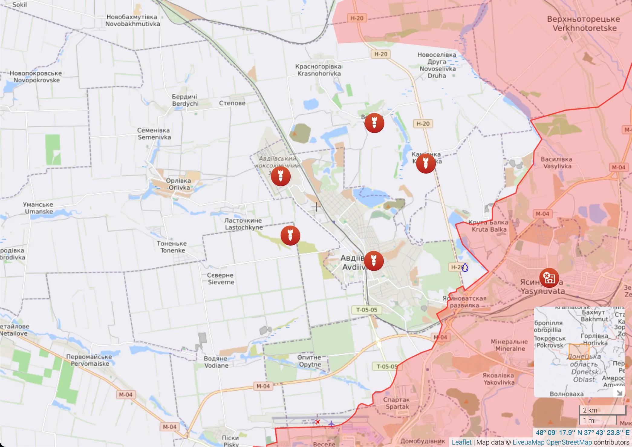 Карта бойових дій поблизу Кам'янки / Скриншот liveuamap