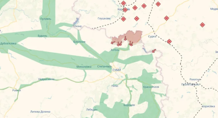 Наразі Сили оборони дають гідну відсіч ворогу в районі села Довгеньке, що входить до Юнаківської громади. Противник намагається просунутися до Юнаківки та Хотіні. Якщо йому вдасться закріпитися в цих селах, це може серйозно ускладнити логістику для нашого підрозділу ЗСУ, який виконує завдання в Курській області. Для ворога це відкриє можливість подальшого наступу.
