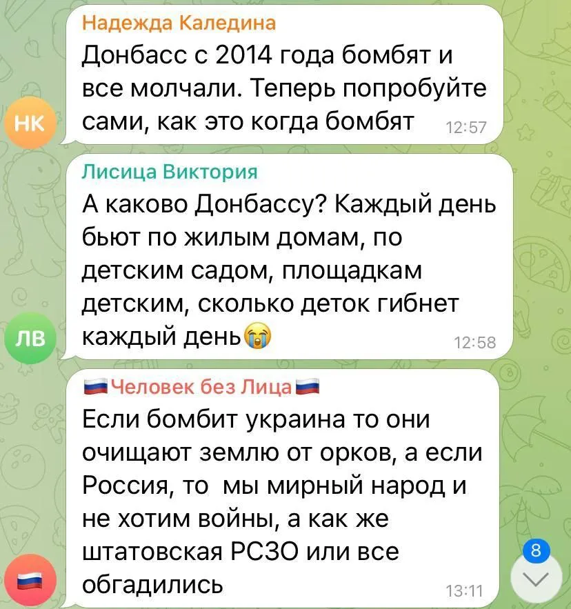 Дехто з росіян маніпулює традиційним "а як же Донбас", демонструючи й далі неадекватність сприйняття реальності та пропагандистське мислення.