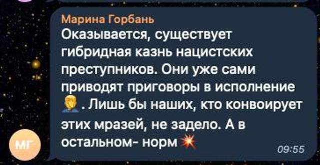 У місцевих телеграм-каналах росіяни пишуть, що їм зовсім не шкода українських захисників, яким їхня держава гарантувала безпеку. Навпаки, вони вважають, що вбивство військових, які героїчно обороняли свою Батьківщину, – "це добре".