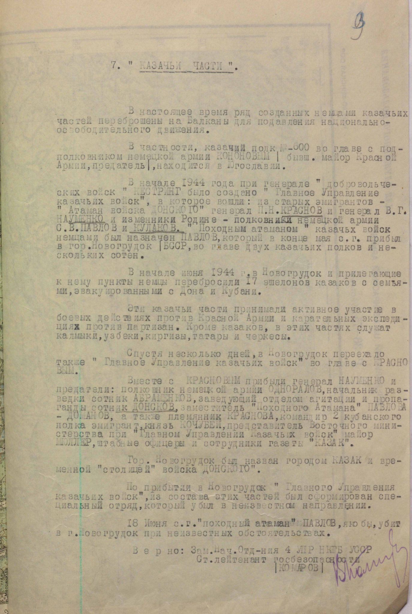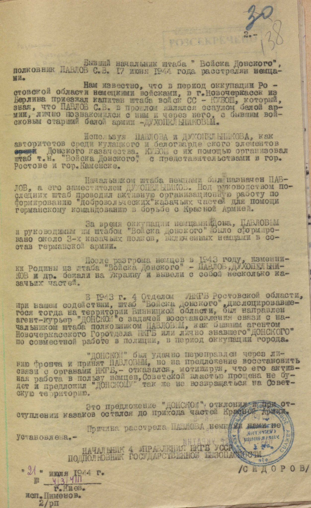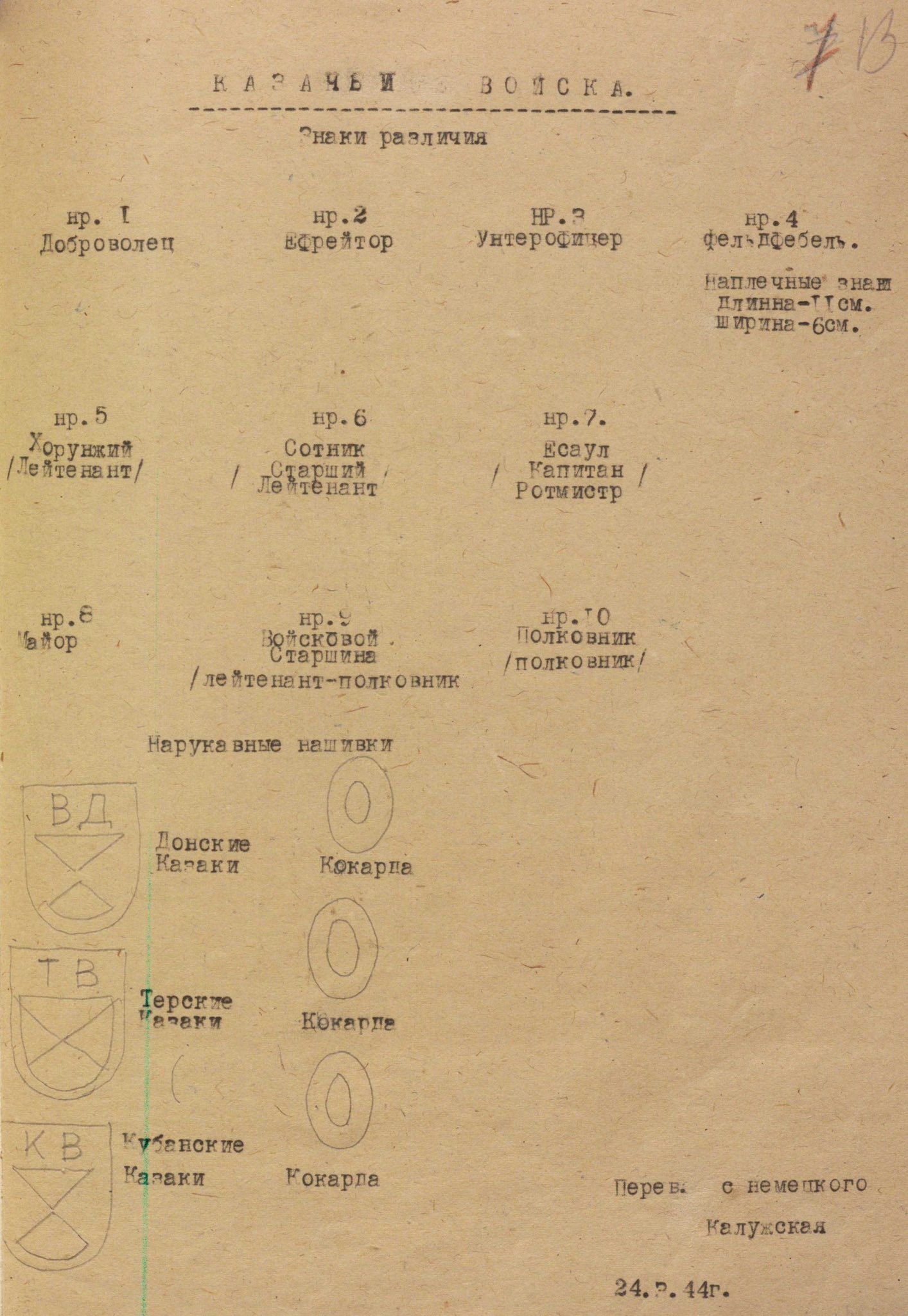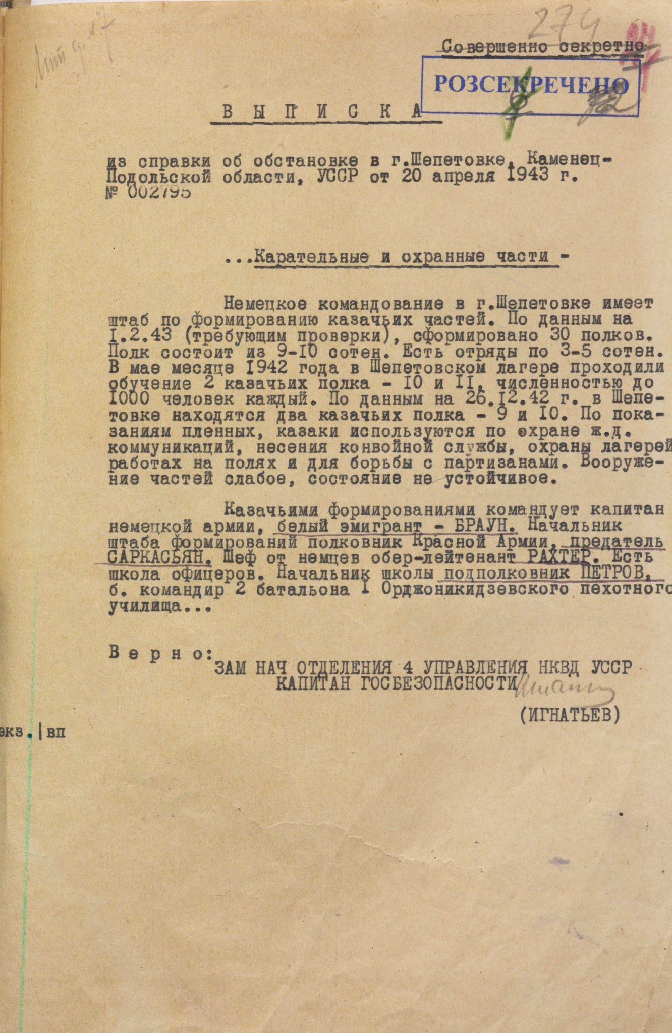 В архівних фондах СЗР зберігається літерна справа під назвою "Казачі полки". Вона була заведена в липні 1944 року 4-м (розвідувально-диверсійним) управлінням НКДБ УРСР.